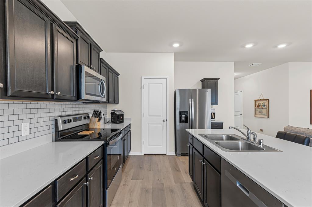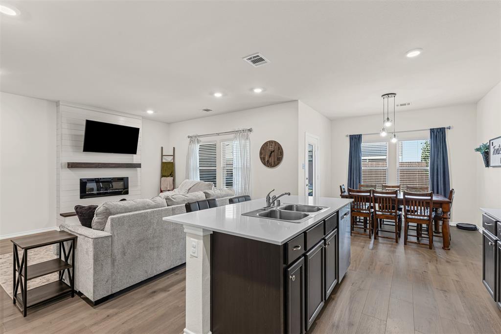 This charming four-bedroom, two-story home in Pilot Point looks like it came straight out of a storybook! Built in 2022, it blends modern convenience with classic curb appeal in a rapidly growing community. The current owners have added thoughtful updates, including custom light fixtures, stylish hardware and backsplash in the kitchen, and a beautiful electric fireplace with a mantel and built-in storage. Inside, you’ll also find two spacious living areas, beautiful quartz countertops, a large laundry room, and bonus storage tucked under the stairs. The garage floor has been professionally coated, and the home is equipped with a tankless hot water heater for instant hot water.