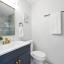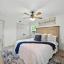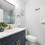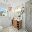 The primary suite offers a double-door closet and a beautifully designed bathroom with a walk-in shower and sleek vanity. The guest bath is equally impressive with an updated vanity, gold hardware, and striking tilework.