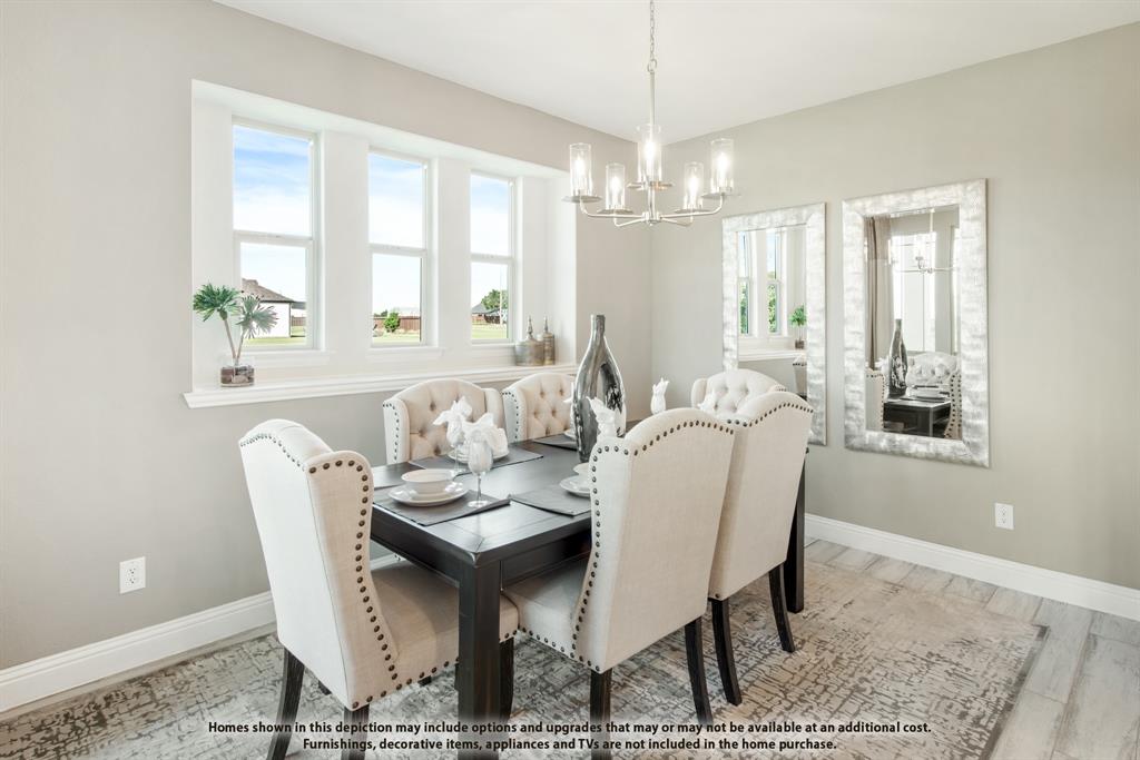 *Seller pays $15K towards closing costs or rate buy down.* NEW & NEVER LIVED IN! Ready October 2025! The Magnolia II by Bloomfield Homes is a striking two-story plan that blends architectural elegance with everyday function, offering 4 bedrooms, 3.5 baths, a 3-car garage, and an array of thoughtful spaces designed for modern living. From the curb, the home impresses with its brick-and-stone exterior, arched entryway, and charming balcony that enhance its timeless character. Step through the 8’ front door into a wide foyer where natural light highlights the warm wood flooring that flows through the main living areas. A dedicated Study with dual doors sits at the front, ideal for working from home, while an elegant Formal Dining Room is just across the entry. The Kitchen is a showpiece, complete with granite countertops, custom cabinetry, built-in stainless steel appliances, a large island with seating, and a walk-in pantry, all designed to make cooking and entertaining effortless. The adjoining Breakfast Nook opens to a covered patio, extending your living space outdoors. The spacious Family Room features a raised ceiling and a dramatic Stone-to-Ceiling Fireplace with cedar mantel, serving as the heart of the home. The first-floor Primary Suite is tucked at the back and includes a spa-like bath with dual vanities, garden tub, separate shower, and a walk-in closet. Upstairs, a large Game Room overlooks the Family Room, while a separate Media Room adds even more flexibility for movie nights or game day gatherings. Three additional bedrooms are upstairs, one with an ensuite bath creating a private guest suite and the others sharing a full bath. A built-in mud bench by the garage entry keeps daily life organized, while extras like window seats, gutters, and exterior lighting make the Magnolia II as practical as it is beautiful. Call or visit Bloomfield at Liberty in Melissa today to learn more!