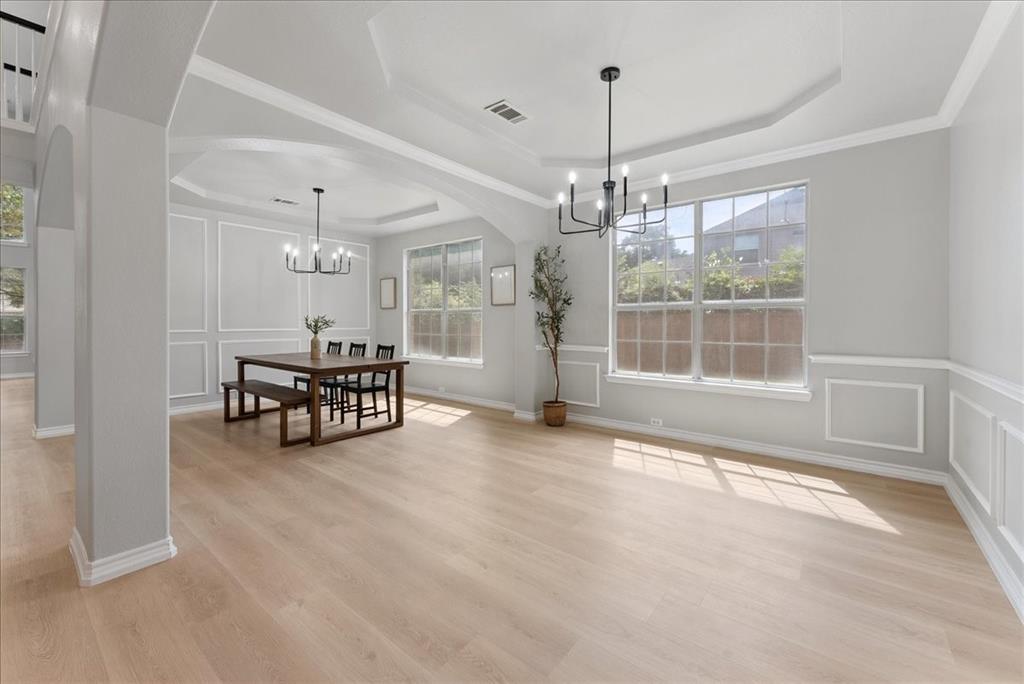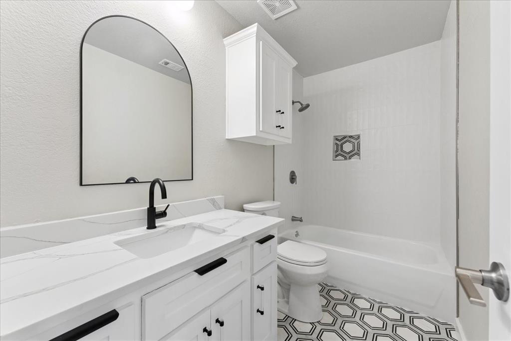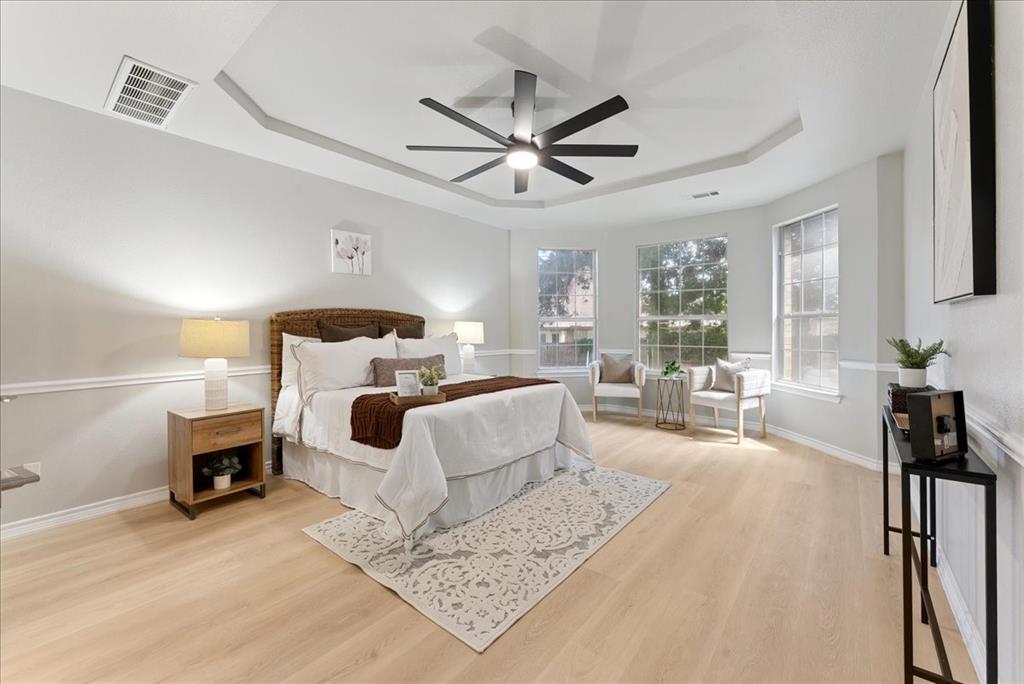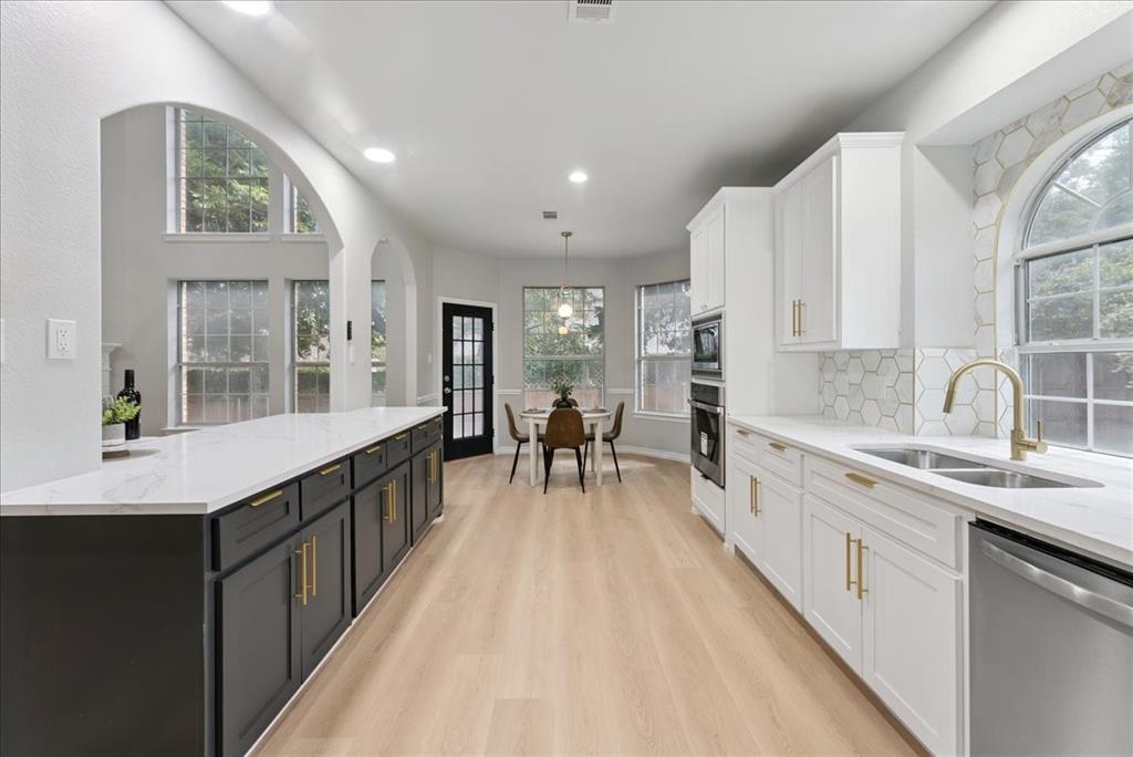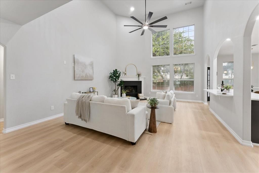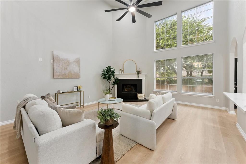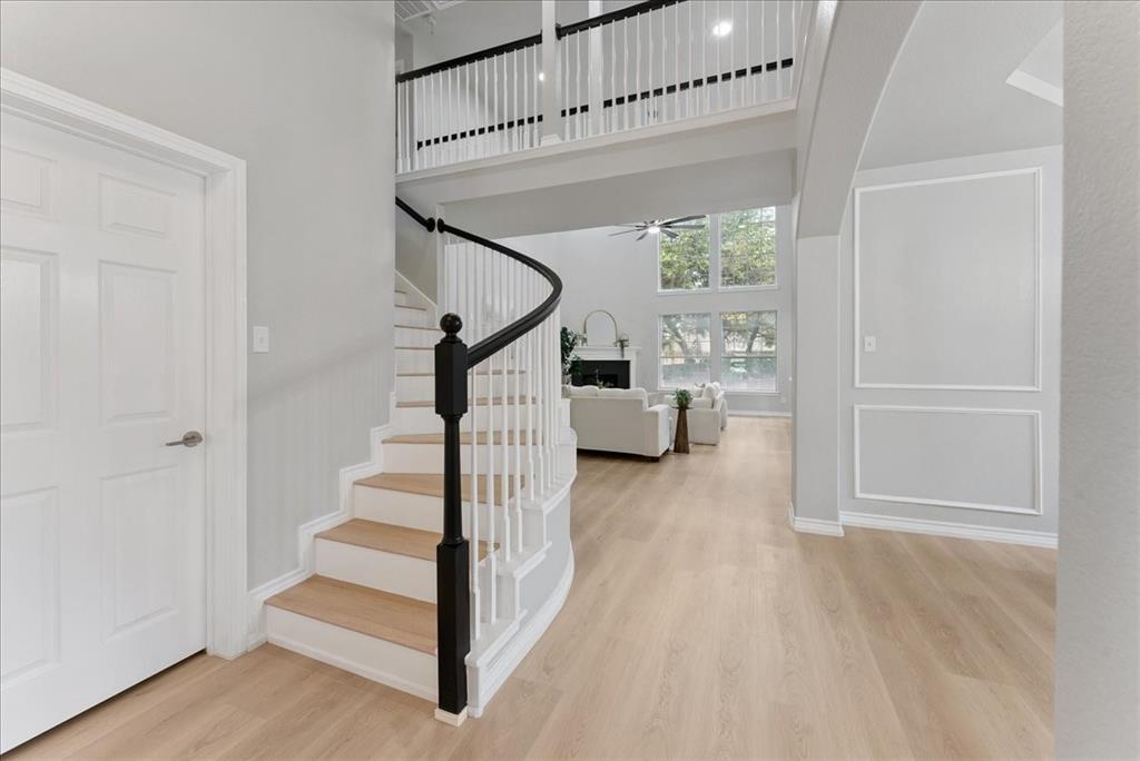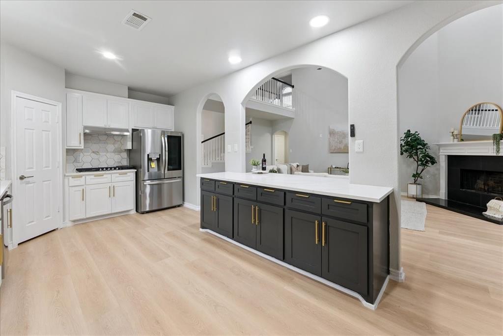 Welcome to this stunningly updated 4,383 sq. ft. dream home that checks every box for space, style, and comfort! Step inside to be greeted by a grand curved staircase, soaring ceilings, and modern decorative lighting that set the tone for luxury living. The open layout flows seamlessly into a bright and airy living room with floor-to-ceiling windows and a cozy fireplace. The chef’s kitchen steals the spotlight with quartz countertops, custom two-tone cabinetry, sleek gold hardware, and an oversized island that’s as functional as it is beautiful. Working from home? You’ll love the dedicated office space tucked away for privacy. Upstairs, the oversized bedrooms and living area offer flexibility for a game room, media space, or even a second office. This home is not just big—it’s beautifully designed, freshly updated, and truly move-in ready.