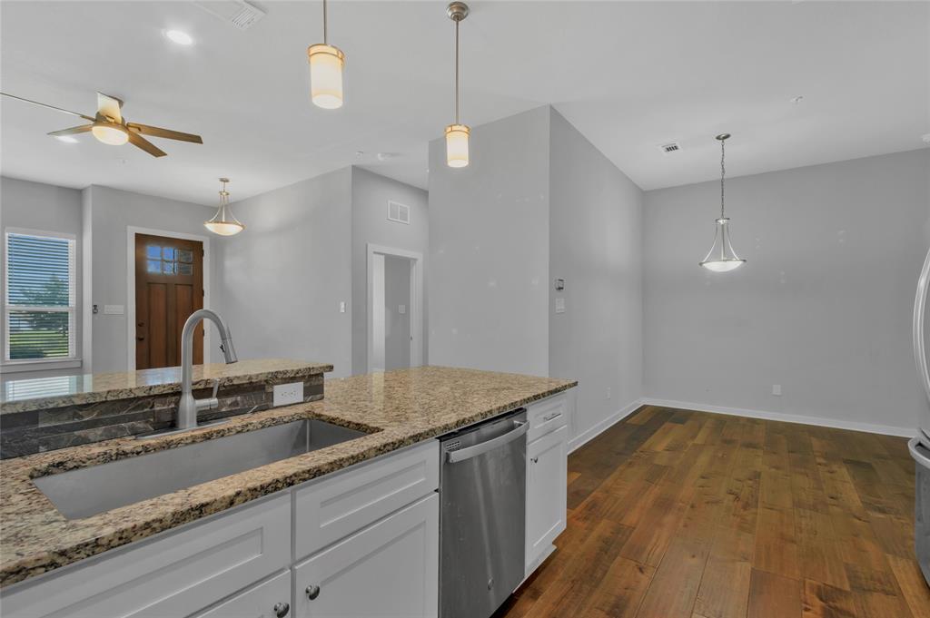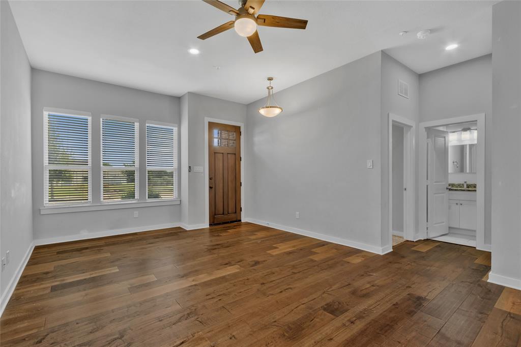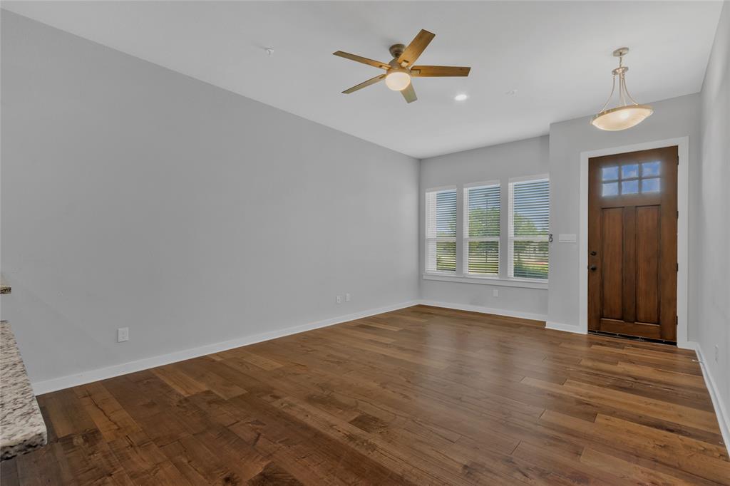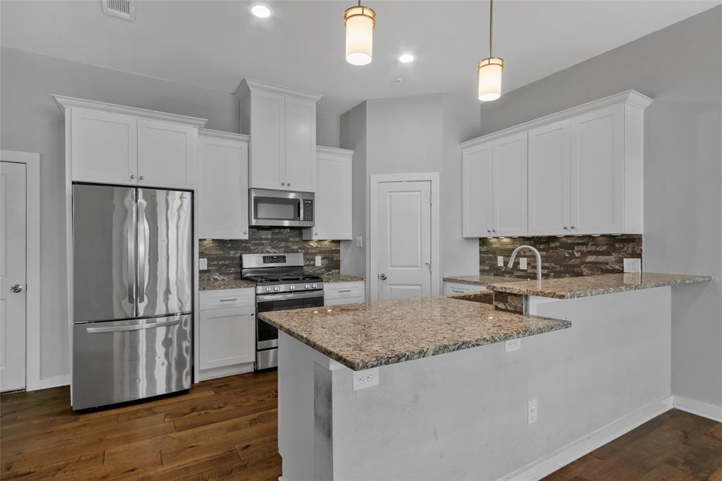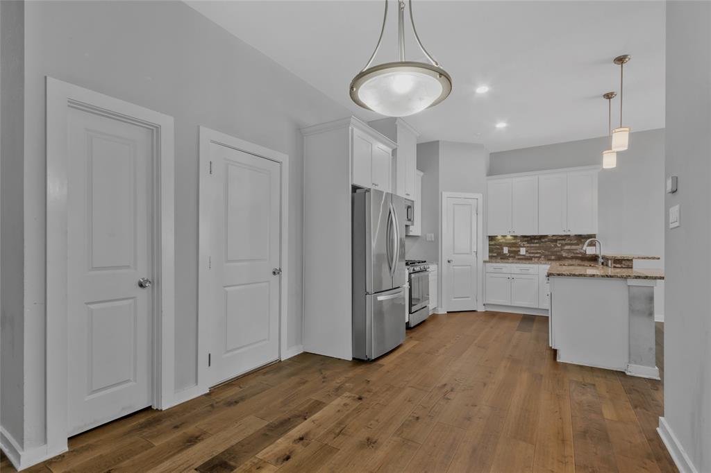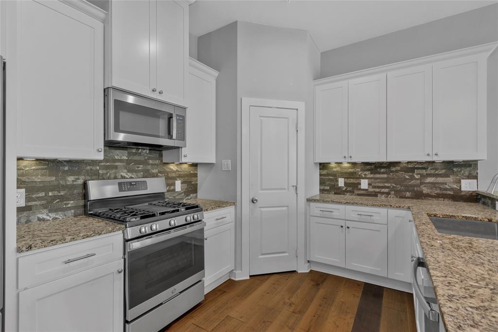 A 4-bedroom, 3 full bathroom luxury townhome in the heart of Frisco. A large bedroom and full bathroom combo downstairs is perfect for an office or an in-law suite. The large family room has engineered hardwood floors, and an open detailed kitchen concept with all the upgrades including stainless steel appliances, refrigerator, 2 pantries, granite countertops, slate tile backsplash and gas cooktop and oven range. The breakfast bar is open to the family room which is fantastic for family gatherings and entertaining. Large open breakfast area off the kitchen. Upstairs find a large game room loft with a laundry room closet. Huge master bedroom upstairs has an ensuite luxury master bathroom and walk-in closet. Two additional oversized upstairs bedrooms upstairs and a third full bathroom with bathtub and shower combination. This is a fantastic layout with great natural light. 2 car garage has extra storage room. This townhome is across from open green space, close to park, playgrounds and walking trails. Easy commute to major highways, large corporate headquarters, plenty of quality restaurants, entertainment, shopping, malls and golf courses. Easy proximity to DFW Airport. A must see for lock and leave living!
