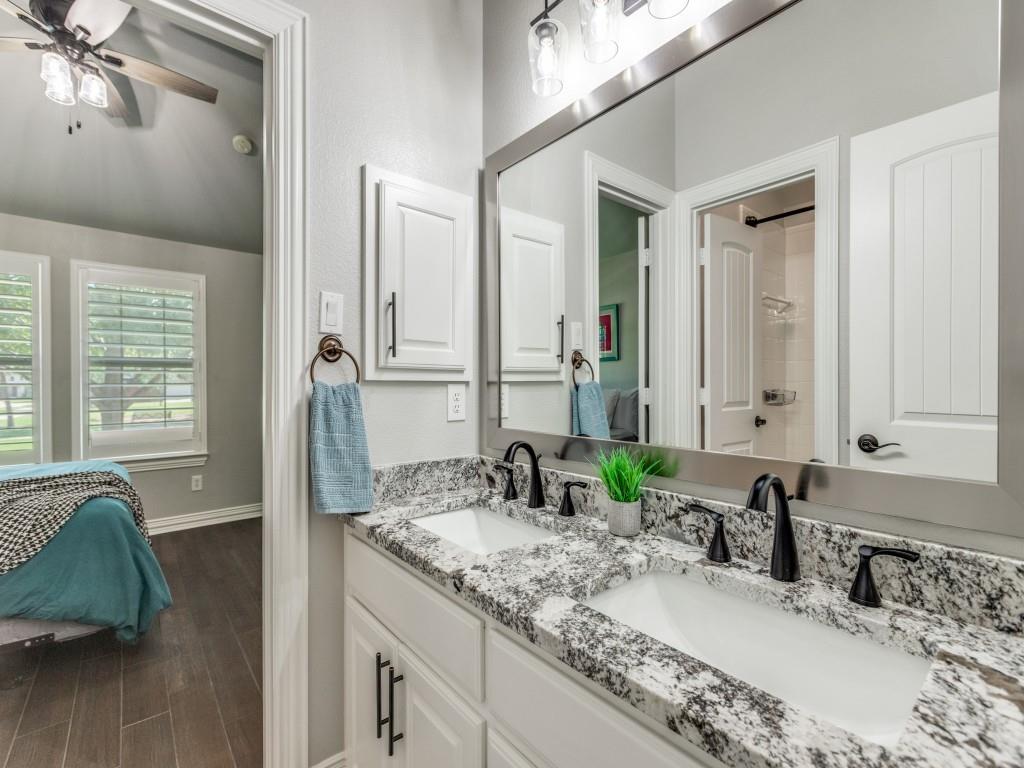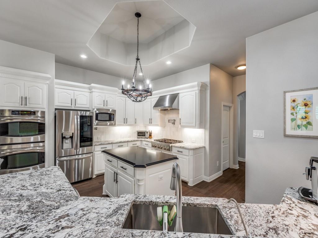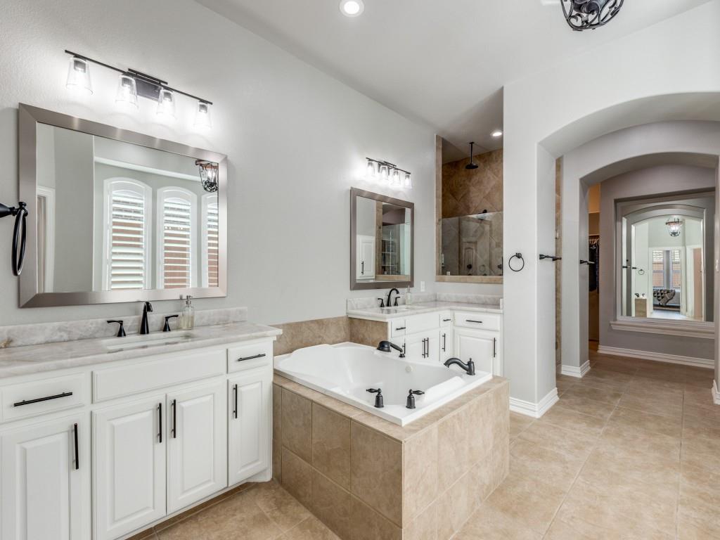 Step into comfort and style with this beautifully updated, single-story home that’s perfect for both everyday living and entertaining. Built by David Weekly Homes, this property combines thoughtful design with premium updates throughout.Fully renovated in 2022, upgrades include: interior paint, light fixtures, updated granite surfaces in every room, and brand-new plantation shutters. The gourmet kitchen boasts a gas cooktop with a powerful double-motor vent hood, leathered granite countertops, and ample storage space. The spa-inspired primary suite includes an oversized walk-in shower, standalone jetted tub, and a massive California-style walk-in closet featuring a center island with a Crystallo granite countertop. Don't forget to enjoy the 3-Car Garage, recently painted with new granite surfaces and epoxy flooring.This home is move-in ready and loaded with high-end finishes. Don't miss your chance to own this thoughtfully upgraded, one-level gem!