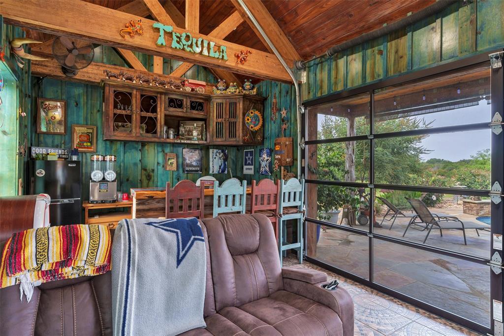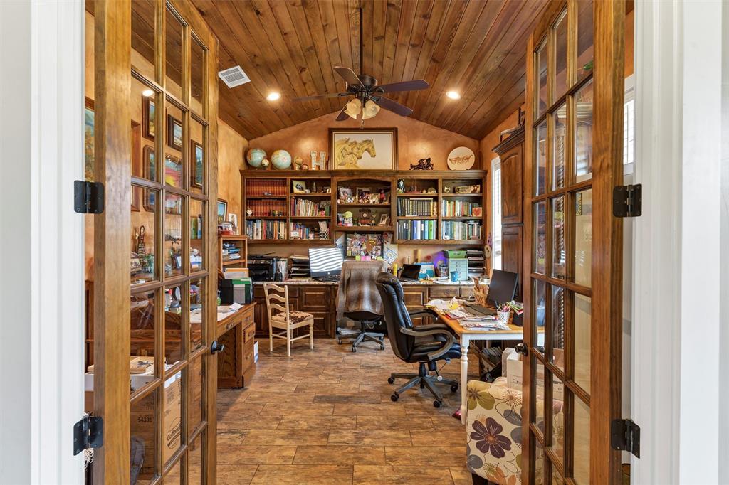 Tucked away on 42 picturesque, fully fenced acres, this legacy property with multiple homes, is the ultimate blend of Texas charm and modern convenience. The main lodge-style home spans 3,200 sq ft, boasting 4 bedrooms, 3.5 baths, a massive office, and gorgeous stone-accented walls that bring the outdoors in. Wide 3-ft doors add accessibility, while the backyard oasis will steal your heart, complete with a sparkling pool, water features, and a cabana with a roll-up door made for entertaining. Got toys or a trade? The 4,000 sqft shop with a 16-ft porch has you covered, and the 24x50 barn is ready for your next venture. There’s also a stocked pond, a massive garden with grapes, squash, zucchini, apple trees, peach trees, plum trees,