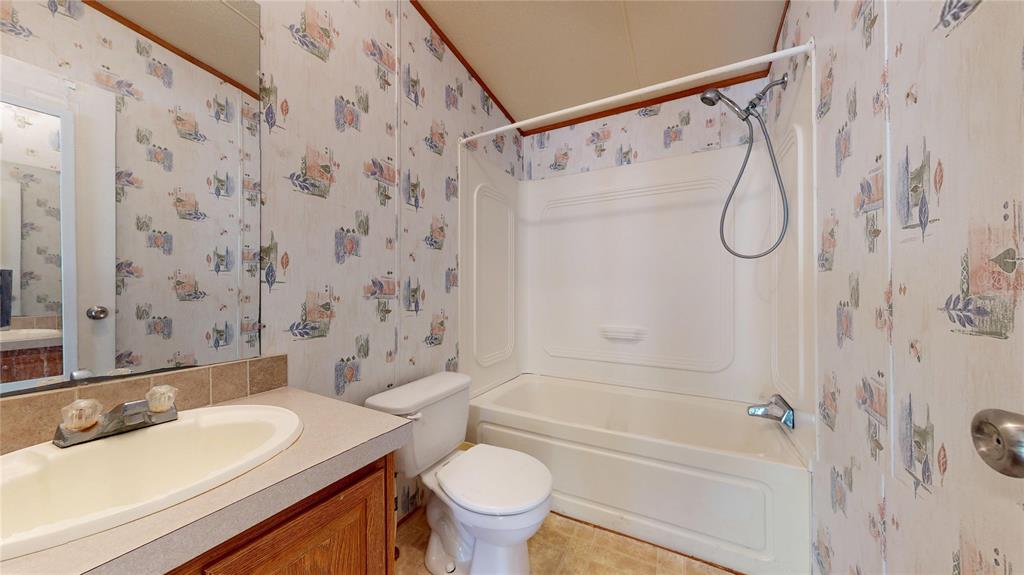 Welcome to an exceptional opportunity to own a spacious inviting home with acreage that is completely fenced and nestled in highly desirable and fast growing Justin, TX. This charming residence boasts 3 generously-sized bedrooms and two well-appointed bathrooms, offering ample space for a growing family or those who love to entertain. Spanning 1,232 well used square feet, this home entails upgrades such as: metal roof 2022, metal skirting 2018, 2 metal car ports 2019, heat pump mini split HVAC system 2024, laminate flooring throughout the house 2024, new stove, washer, dryer 2025. Plus, a 1600 sq ft metal barn with sewage and water connections 2020. The heart of the home features a welcoming living area designed for relaxation and gatherings. The kitchen is equipped to handle your culinary adventures and seamlessly connects to the dining space, perfect for hosting dinner parties or casual meals. The bedrooms offer privacy and tranquility in a park like setting, ensuring restful nights for everyone in the household. Stepping outside, you'll find yourself embraced by the community's serene ambiance, making it a pleasant retreat from the hustle and bustle of everyday life. The 1600 sq ft barn is on concrete slab foundation that offers plenty of space for building a barndominium, raising animals, storage, and other objectives. Located within close proximity to essential amenities, schools, churches and parks, this property is positioned ideally for convenience without sacrificing a country like atmosphere. Don't miss the chance to make this property your own while it's still available.