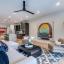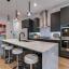 The kitchen is a showpiece, designed for those who love to cook and entertain. A striking marble waterfall island anchors the space, complemented by stainless steel appliances, double ovens, designer lighting, and a walk-in pantry. The open-concept layout flows seamlessly into the living area, where floor-to-ceiling sliding doors create an effortless transition to the outdoors.
