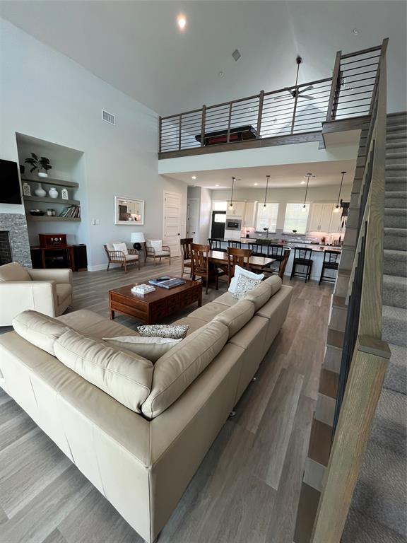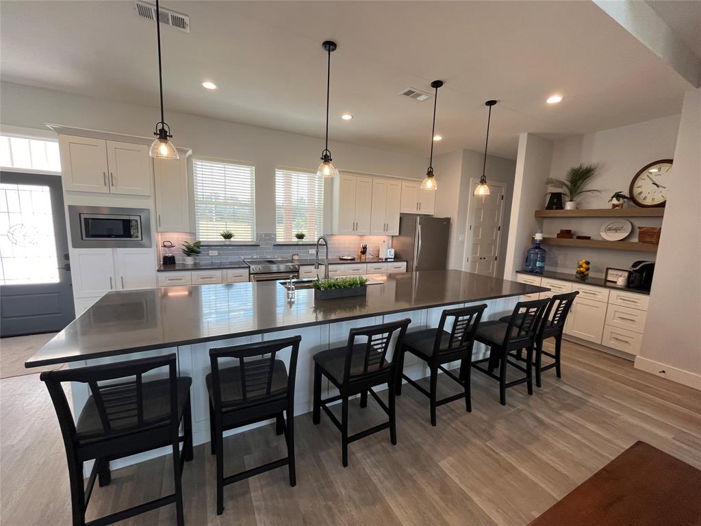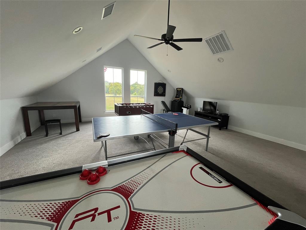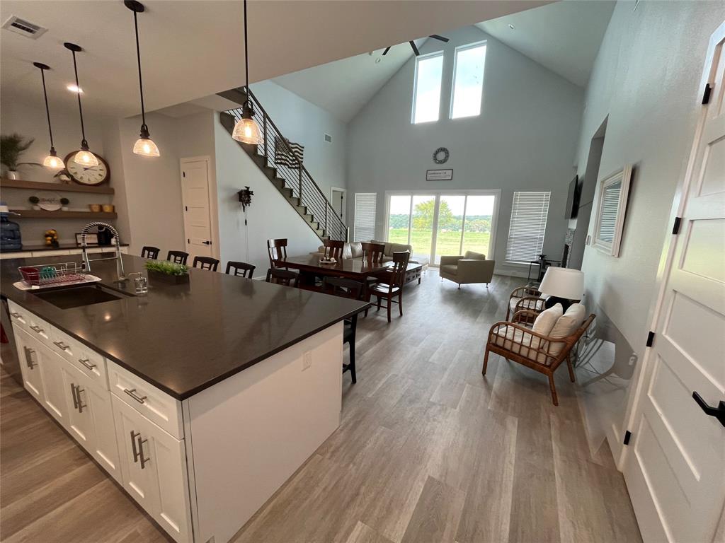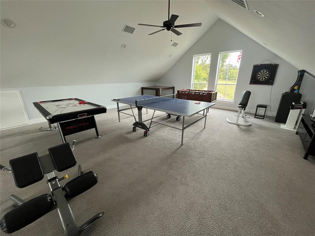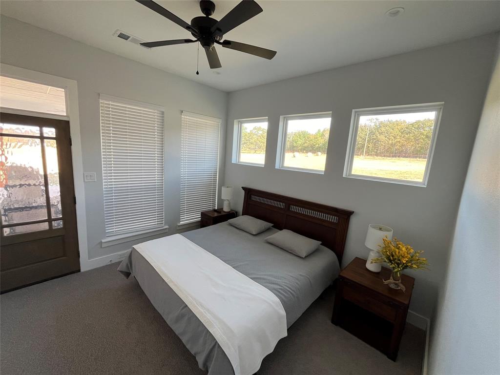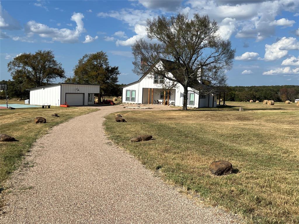 Property located on over 12 acres. Calm and tranquil for a weekend place or to make it your permanent residence. Open plan with huge island for family and friends to gather. 8ft shaker doors throughout. Great game room located on second floor with a wonderful view to the back of property and the living area. All electric appliances, low maintenance vinyl plank floors in main area. Rooms are carpeted in main house. Enjoy wonderful wrap around patio facing north. Detached garage has a full bath with the 5th bedroom. Outdoor play area for a friendly basketball game or pickleball. Deep two car garage to store full size vehicles, current owner stores tractor with mowing attachment connected. Attached to the garage is a bedroom with a full bath, bedroom also has a sink.