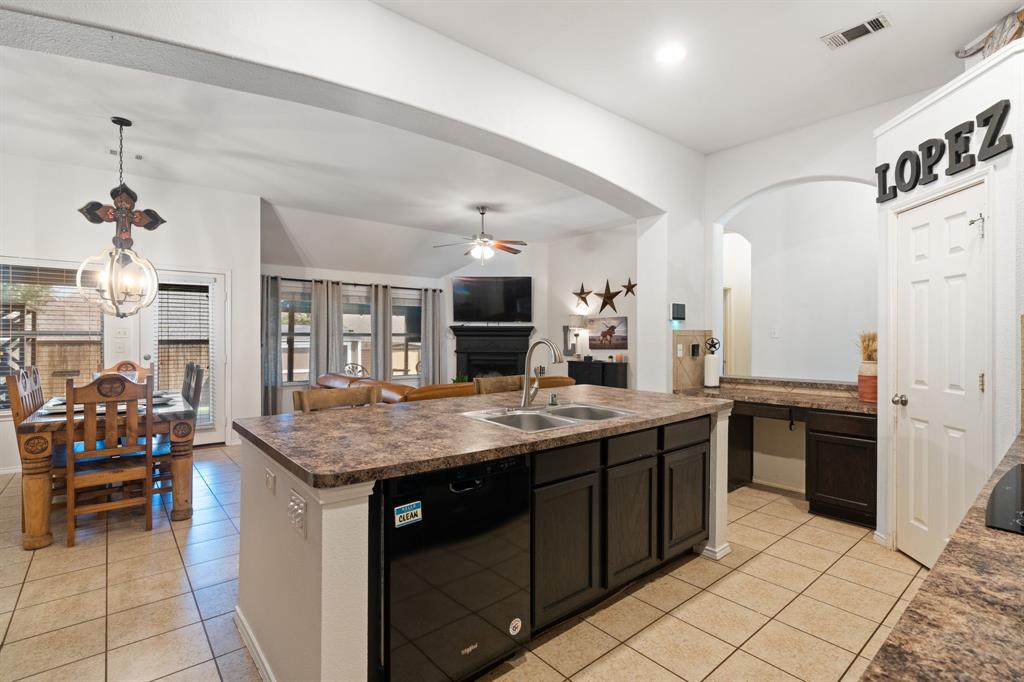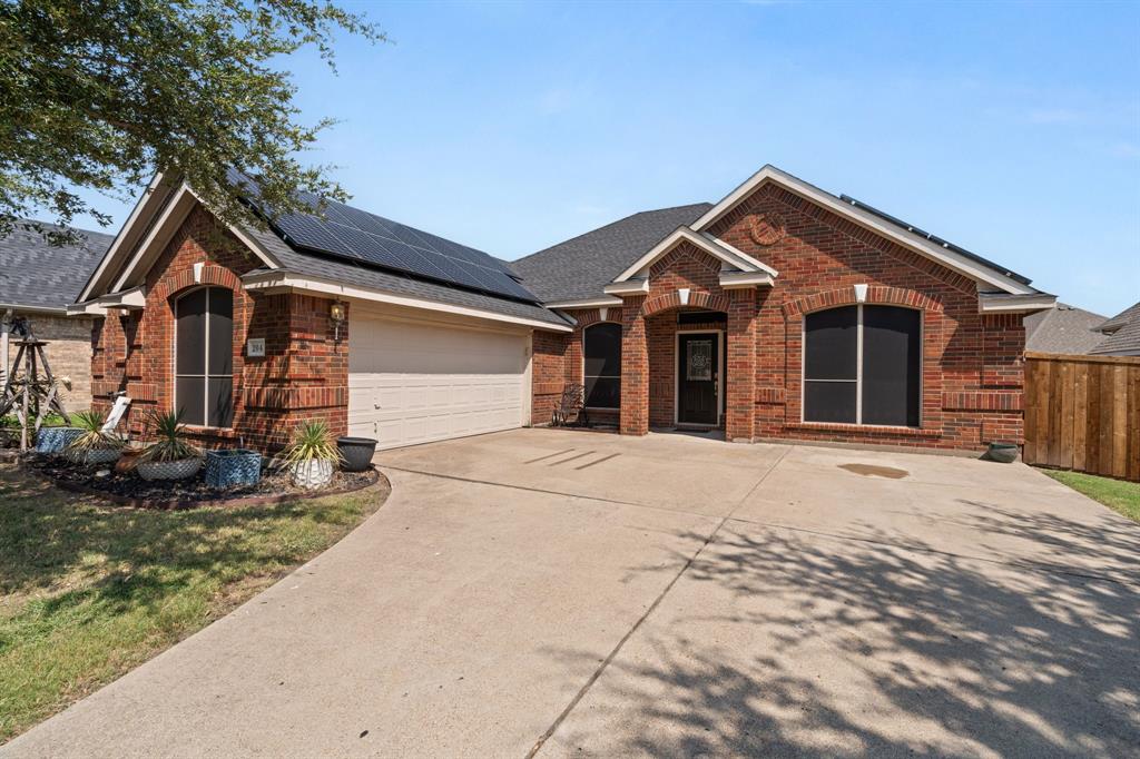 Pride of ownership shows in this 4 bedroom, 2 bath home offering an open layout perfect for everyday living and entertaining. The spacious kitchen features a large island ideal for gathering, cooking, or casual meals, while the dedicated office provides a quiet retreat for work or creativity. Desirable open layout combines kitchen with casual dining and living room with fireplace. Need a formal dining space? The flexible fourth bedroom can easily be converted back to dining room, giving you options to suit your lifestyle. The private primary suite is a true retreat, complete with an attached bath featuring a jetted tub, separate shower, and generous walk-in closet. Looking for more storage, check out the custom cabinetry in the garage! Step outside to a covered back patio that spans the length of the home; a true outdoor haven for BBQs, evening hangouts, or lazy weekend mornings. You'll love the NEW Tuff shed building that stays! Energy saving solar panels help keep utility bills low year round, adding value and sustainability to your day to day life. Owner will pay them off at the time of closing. Located in a welcoming neighborhood, this home offers comfort, flexibility, and room to grow all within walking distance to local elementary, junior high, and sports complex. Don't miss this one!