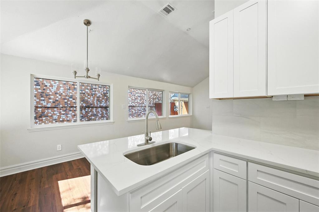 Beautifully renovated 3 bedroom, 2 bathroom home with an open layout and soaring ceilings. The kitchen and bathrooms are upgraded with quartz countertops, new cabinetry, and brand-new appliances. The primary suite features a walk-in shower with dual sinks, while the guest bath includes a relaxing tub. Updates include new windows throughout and a new HVAC system, making this home stylish, comfortable, and truly move-in ready.
