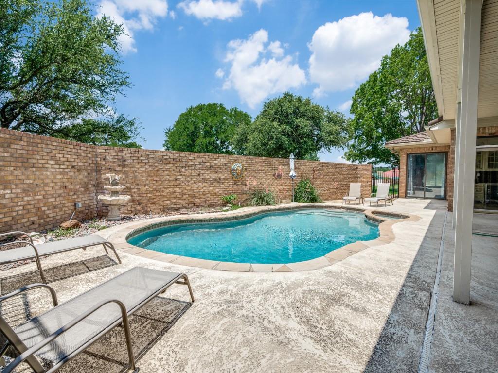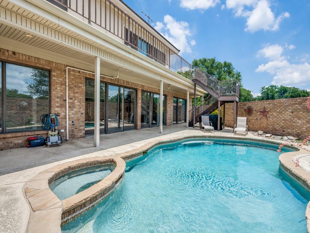Seller offers $25,000 for Buyer Other Expense. See Page 6. This spacious, recently updated, is perfect for a 2 family home. Upstairs living quarters and luxurious bath with 2 large walk in closets and a balcony that overlooks sparkling pool. 10' brick fence around entire back creates a very private entertaining and pool fun party. Four full bedrooms down with each having its own bath. Updates include wood flooring, updated bath, blackout curtains. Kitchen and breakfast with new custom cabinets, quartz tops, top of the line appliances.