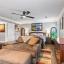 The open-concept design features a light-filled living room with large windows and custom shutters, anchored by a cozy gas fireplace and overlooking your backyard retreat. The gourmet kitchen is a chef’s dream, complete with a commercial-grade gas cooktop, double ovens, quartz countertops, and a generous eat-in island which is perfect for entertaining. Each bedroom offers its own private bath, providing comfort and convenience for family or guests.