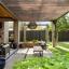 The expansive backyard is built for entertaining, with a covered porch, outdoor fireplace, pergola, and a large grassy area. Inside, the open-concept layout connects a chef’s kitchen, second dining space, and oversized living room, all finished with marble countertops, custom millwork, designer lighting, and top-tier Wolf and SubZero appliances.