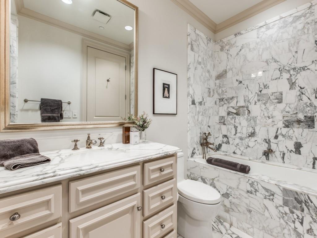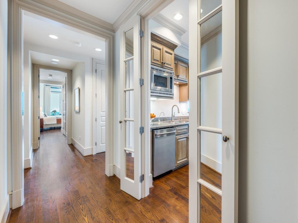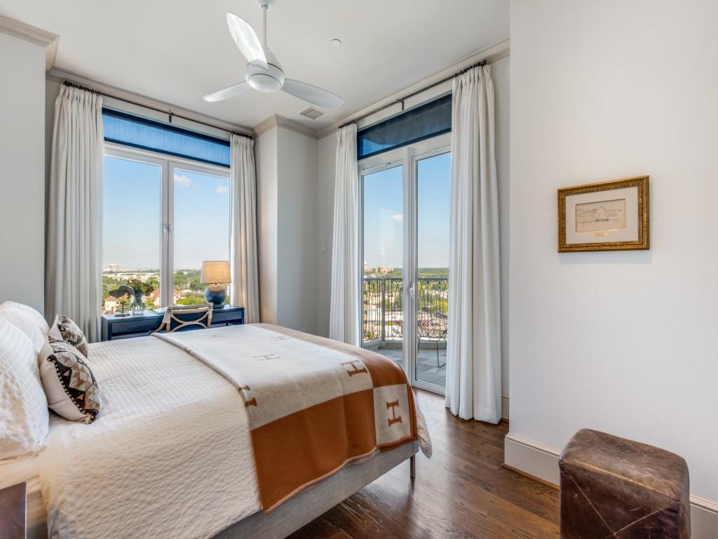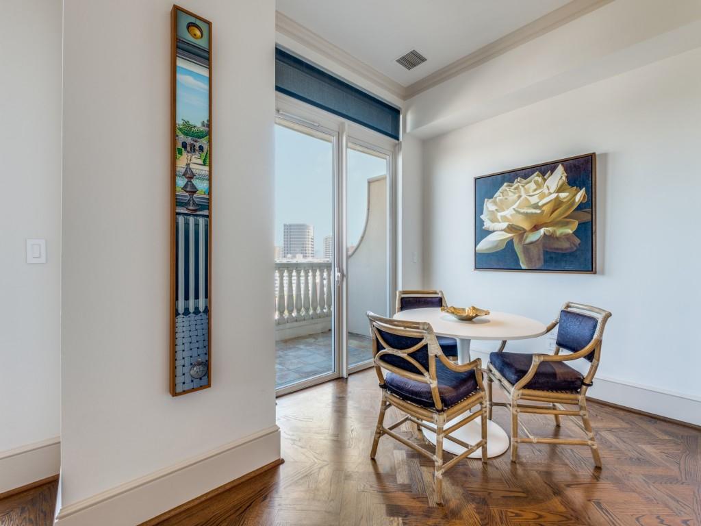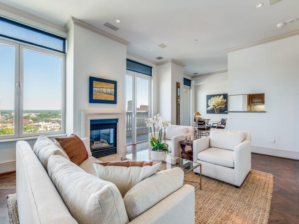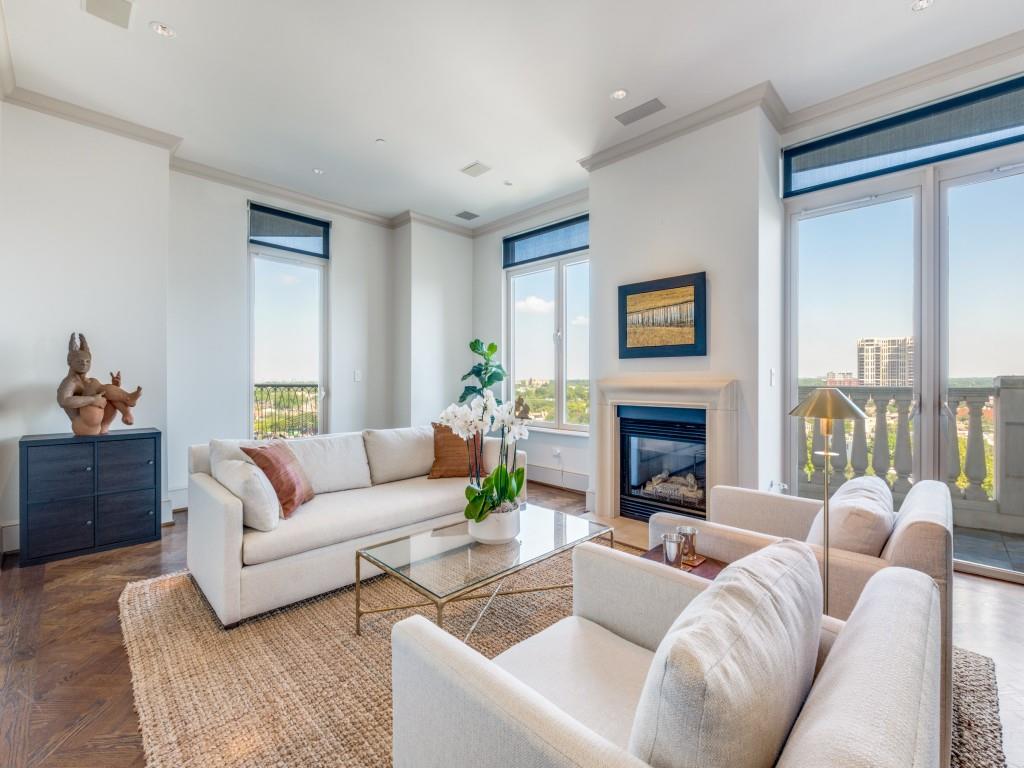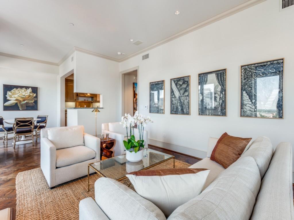 Indulge in the luxe life in this high floor, one bedroom, 1.5 bath corner residence with panoramic views at the prestigious Vendôme! Perfect for either a lock-and-leave pied-à-terre or full-time residence, this light-filled home in the leafy Turtle Creek corridor combines the timeless sophistication of an elegant Parisian apartment with the modern comforts one expects of an ultra-luxury Dallas high-rise. 10-foot ceilings, crown moldings, custom recessed lighting, 8-foot solid panel doors, solid oak herringbone floors, a handsome fireplace, and tall French doors opening to 2 spacious balconies make this home truly exceptional. The bedroom retreat, with bespoke closet and spa bathroom swathed in Carrara marble, occupies a private corner from which to gaze at the nighttime sky. Prepare the simplest or most elaborate cuisine in the chef’s kitchen, outfitted with warm paneled cabinetry, granite counters, Sub Zero refrigerator, and gas cooking. An in-unit laundry adds convenience while wiring for sound offers the potential for music throughout. Life at The Vendôme is easy for the full- or part-time resident, with 24-7 concierge, valet service, on-site management, 24-7 package receiving, and a complete, skilled team of maintenance personnel. Awaiting you is a glamorous swimming pool with spa, private cabanas, and separate pavilion with gas grills, all enveloped in a screen of fragrant magnolias. Lush gardens, a fully equipped gym, locker rooms with saunas, 3 luxurious guest suites, library with coffee-tea bar, elegant entertaining salon with fountain terrace and catering kitchen, dog walk, and 2 dedicated, well-located garage parking spaces add to the effortless lifestyle. All this, and more, next door to Turtle Creek Park and within minutes of the Dallas Arts District, world-class shopping at Highland Park Village, and so many of the city’s favorite restaurants. Come see why The Vendôme is arguably Dallas' best address.