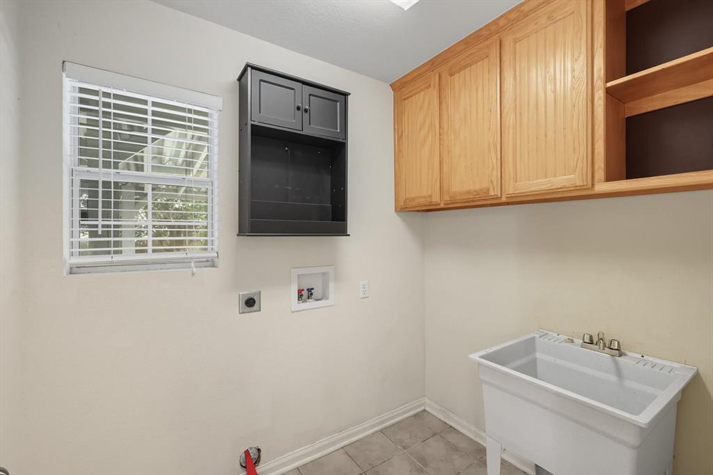 The kitchen flows seamlessly into the living and dining spaces, making it ideal for both everyday living and entertaining. A dedicated laundry room with a sink adds extra convenience.