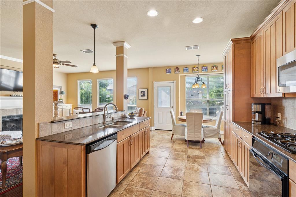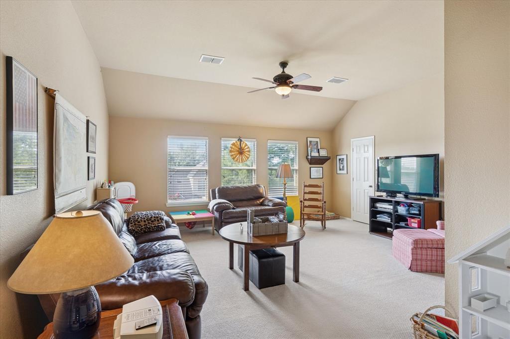 Beautiful home in quiet established neighborhood with community pool, park and playground. This home is perfect for entertaining friends and family. Plenty of living space with 2 large living rooms, 2 dining areas and a great kitchen in the center of the home. Kitchen is open to living room, breakfast area and dining room, it features a gas range, granite countertops, pantry and utility room. Living room is welcoming and cozy with fireplace and windows over looking backyard and putting green. Half bath under stairs off living room. Large primary bedroom with ensuite spa like bathroom featuring dual sinks, separate shower and great walk in closet. Upstairs has a large living area, great for kids or teenagers, large closet off living room, 3 bedrooms all with great walk in closets and 1 full bathroom. Backyard is huge and has a putting green that can enjoyed by all.
