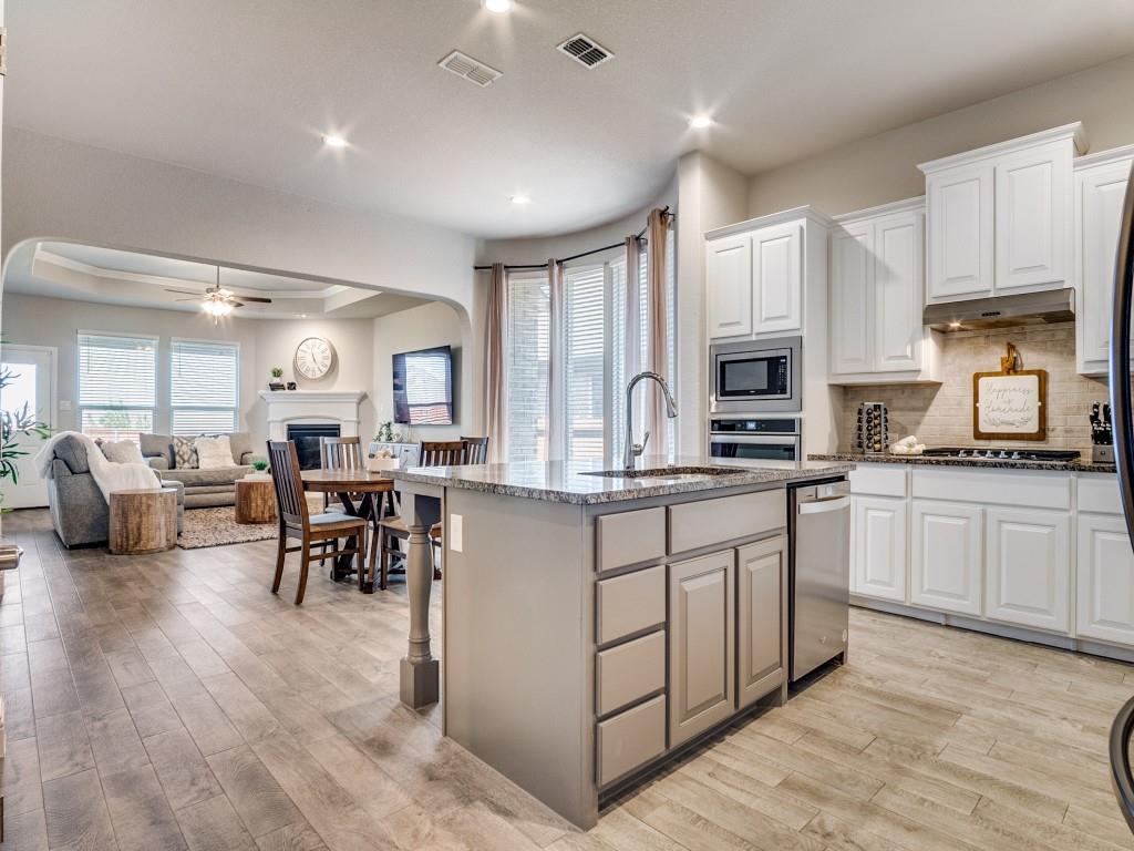 The most coveted one-story floorplan with DR Horton ideally situated offering a private backyard, fresh interior paint and a NEW ROOF! Meticulous attention to detail by these homeowners to be appreciated by your pickiest buyers. BETTER THAN NEW with Designer color palette, permanent outdoor lighting, stone flowerbeds, french drains on each side of lot. **Walk or bike to nearby elementary and middle schools. Award winning Aledo ISD** Enjoy the spacious family room with corner fireplace and outdoor views. Amazing kitchen is a chef's dream with ample prep + serving space + gas cooking! Dining area features bay windows + recessed area for furnishings or dry bar. Spacious primary suite for ultimate relaxation. Ensuite offers separate shower, private water closet, soaking tub, generous vanity and fabulous walk-in closet. Two secondary bedrooms ideal for growing family share hall bathroom. You'll love the flexibility the separate office space offers featuring french doors - could be a play space, media room or another bedroom with nearby half bath. Generous built-in cubby space. 2-car garage with attic access, tankless water heater. Morningstar offers pools, playground, pickleball, dog park, walking trails, catch+release ponds, sand vball and wonderful memories! Addt'l resort style pool slated for next year!