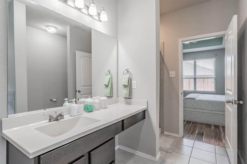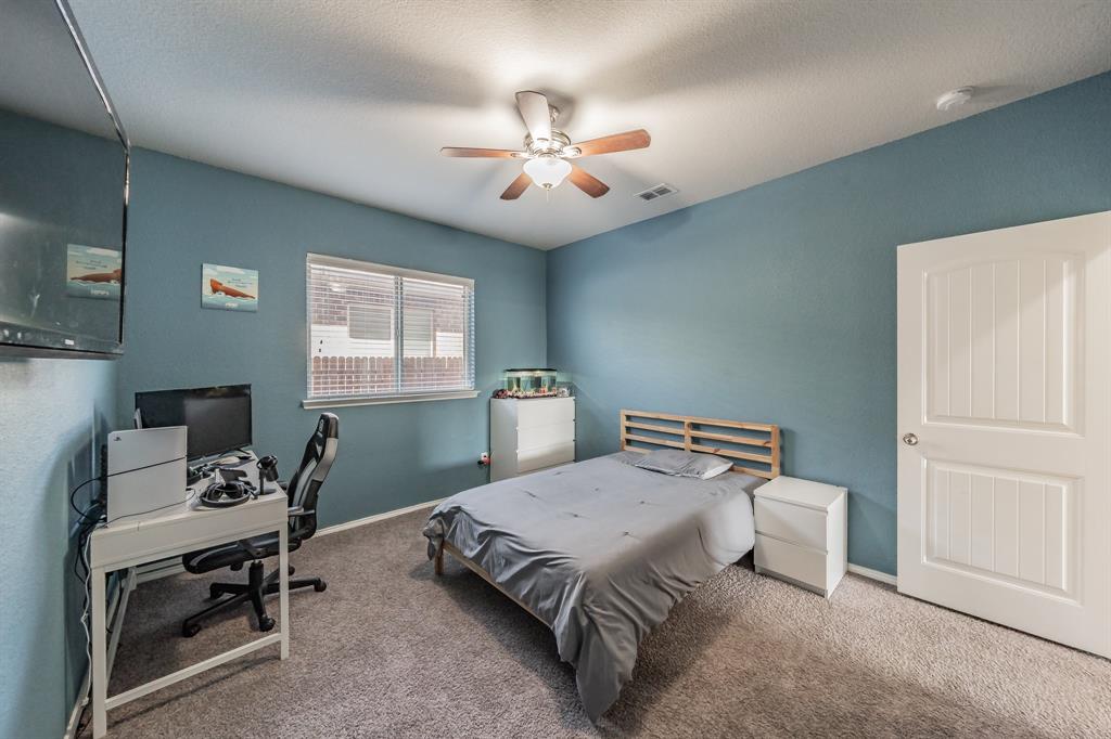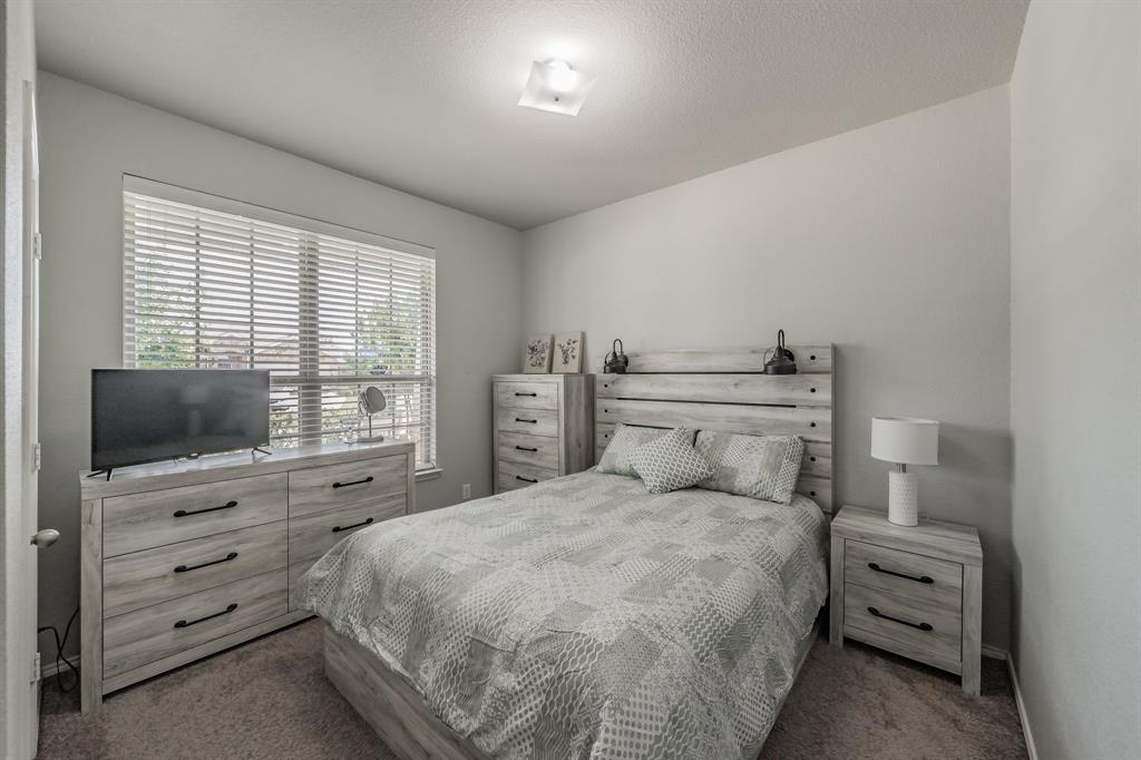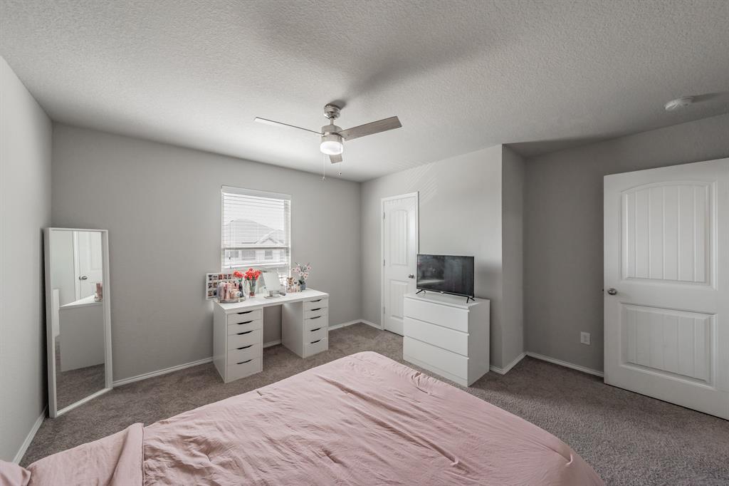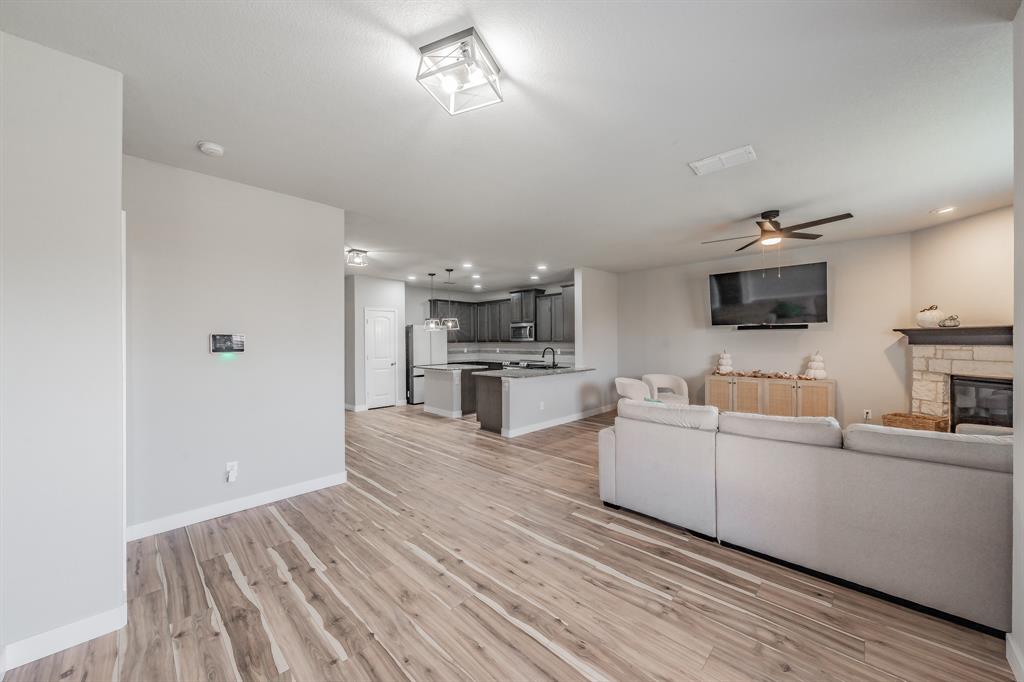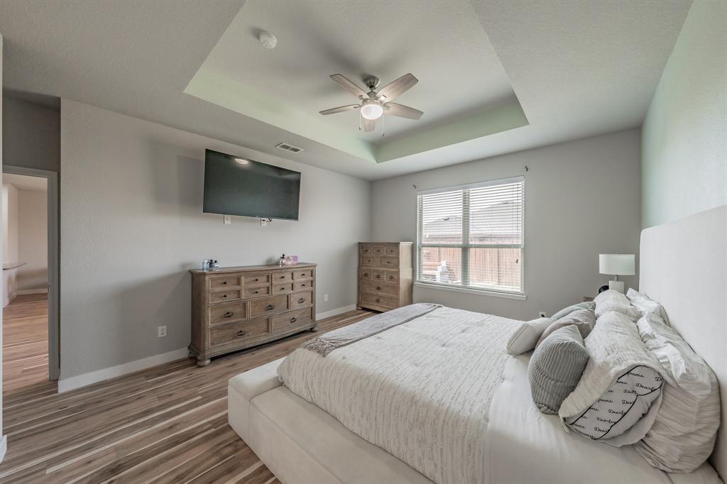 Situated on a corner lot, this move in ready 2 story home is extraordinary. Great space for everyone at over 2,500 square ft. Home boasts 5 bedrooms - rare for the area; plus extra 2nd floor room as office, game room. 3 bedrooms downstairs including the primary with ensuite. An additional full bath downstairs. 2 bedrooms upstairs with a full bath and the extra flex room. Beautiful flowing layout with separate dining, living, kitchen, breakfast areas. Eat at the breakfast bar to be part of the cooking party. Electric fireplace in the living room. 1st floor laundry off of the kitchen for your convenience. New Paint. Plenty of space in the backyard. Walking distance to elementary school. Community amenities include a stocked lake, trails, and bridges that connect to the pools, parks, playgrounds, fitness center, and dog park. Get this house today.