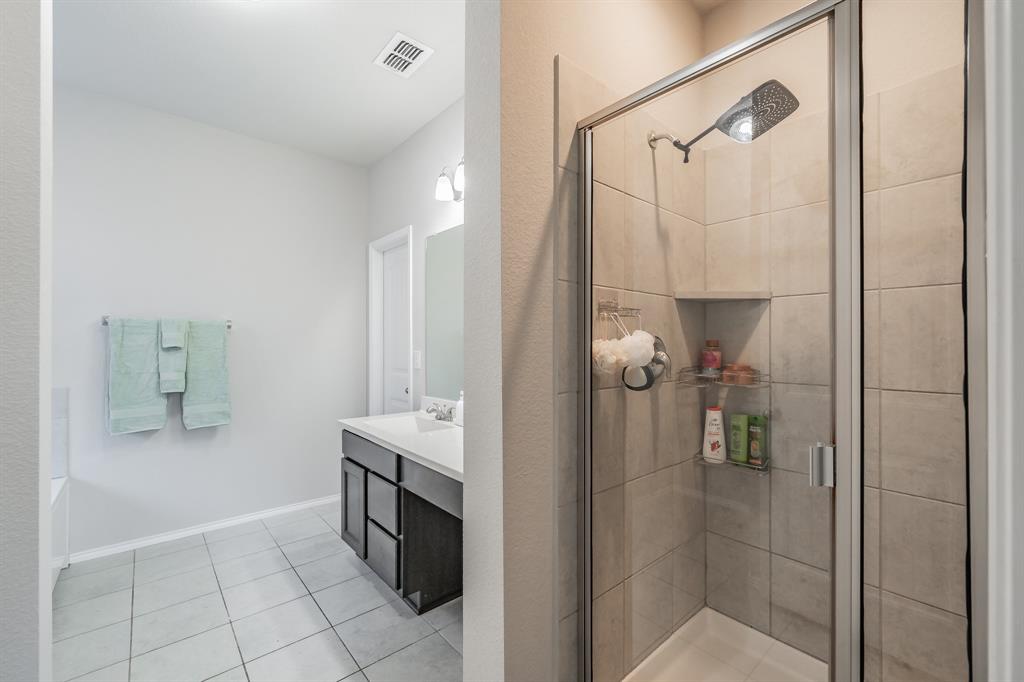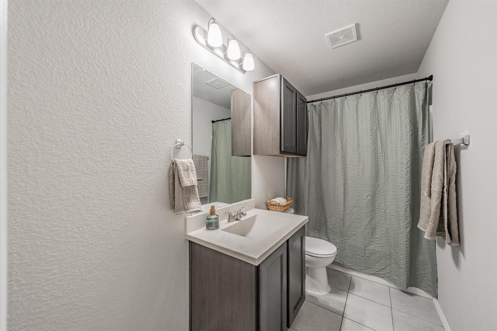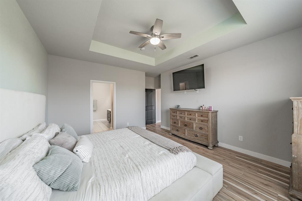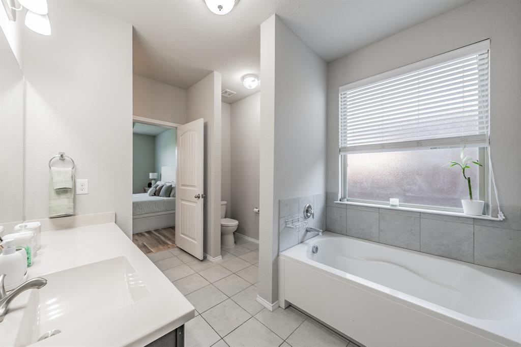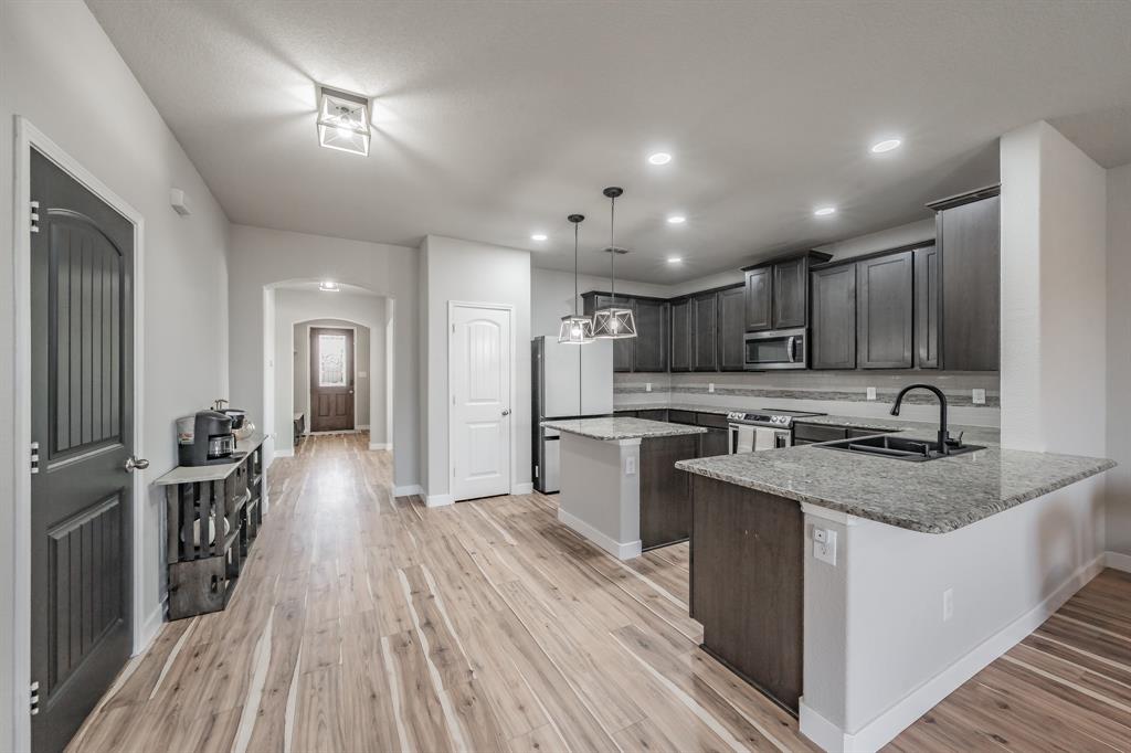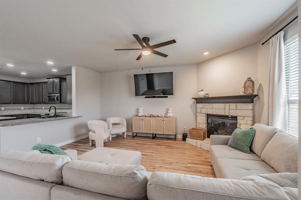Situated on a corner lot, this move in ready 2 story home is extraordinary. Great space for everyone at over 2,500 square ft. Home boasts 5 bedrooms - rare for the area; plus extra 2nd floor room as office, game room. 3 bedrooms downstairs including the primary with ensuite. An additional full bath downstairs. 2 bedrooms upstairs with a full bath and the extra flex room. Beautiful flowing layout with separate dining, living, kitchen, breakfast areas. Eat at the breakfast bar to be part of the cooking party. Electric fireplace in the living room. 1st floor laundry off of the kitchen for your convenience. New Paint. Plenty of space in the backyard. Walking distance to elementary school. Community amenities include a stocked lake, trails, and bridges that connect to the pools, parks, playgrounds, fitness center, and dog park. Get this house today.