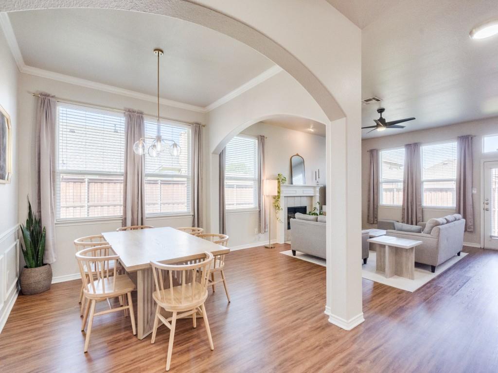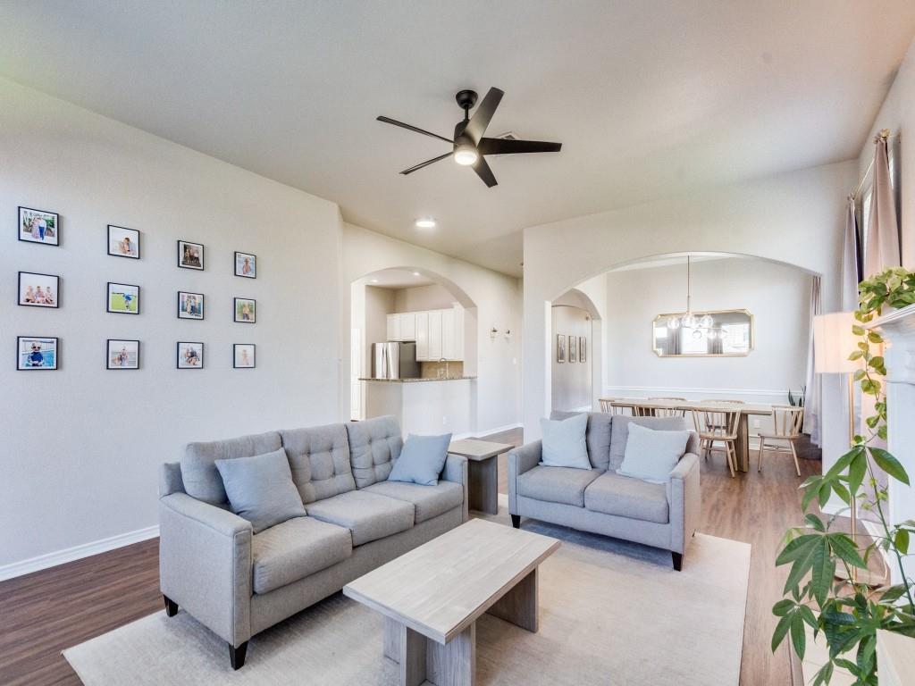 Welcome to this stunning and spacious 4 bedroom single-story DR Horton home, thoughtfully updated and move-in ready. Featuring an open floor plan with soaring ceilings and walls of windows, this home is bathed in natural light and offers effortless flow throughout.