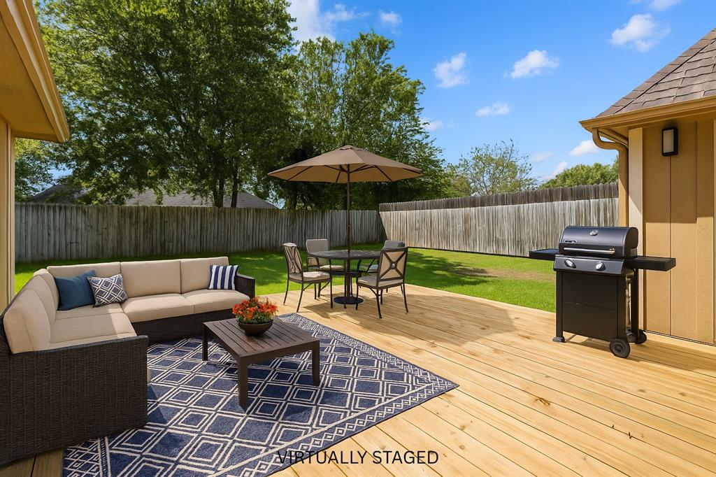 Welcome to 8314 Intrepid Lane in Rowlett—a move-in ready home that perfectly blends updates, location, and lifestyle. Featuring 3 bedrooms, 2 full baths, and approximately 1,482 sq ft of living space on a generous 7,753 sq ft lot, this property includes a brand-new back deck ideal for entertaining. Freshly painted throughout and pre-inspected for peace of mind & transparency, the home offers an open layout with vaulted ceilings, abundant natural light, and a spacious living area centered around a cozy gas fireplace—the perfect setting for relaxing evenings or gatherings with family and friends. The kitchen provides ample cabinet and counter space, a gas range, and a breakfast area, ideal for casual meals or weekend mornings. The thoughtful floor plan ensures functionality and comfort, making this home not only move-in ready but also an excellent opportunity for first-time buyers seeking both affordability and long-term value. Located in the sought-after Spinnaker Cove subdivision, this home offers incredible convenience with nearby shopping centers, grocery stores, dining, and easy access to President George Bush Turnpike, I-30, and Highway 66—ensuring quick commutes throughout the Dallas–Fort Worth Metroplex. Outdoor enthusiasts will love being just minutes from Lake Ray Hubbard, where boating, fishing, scenic parks, trails, and waterfront dining await. Families will also appreciate the highly flexible Garland ISD Choice of School program, which includes access to Carl L. Herfurth Elementary, a 2023 National Blue Ribbon School recognized for academic excellence and student achievement. Combining modern updates, a prime location, reputable schools, and proximity to both daily conveniences and lake recreation, this home is a polished choice for any buyer—and a particularly great first home for those ready to begin building lasting memories in a welcoming community.