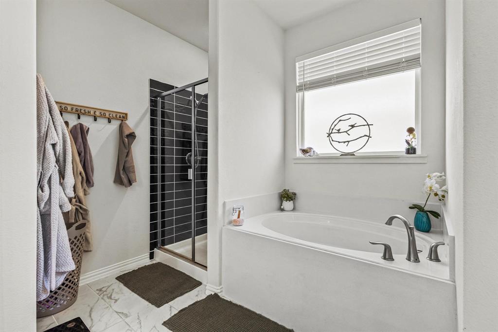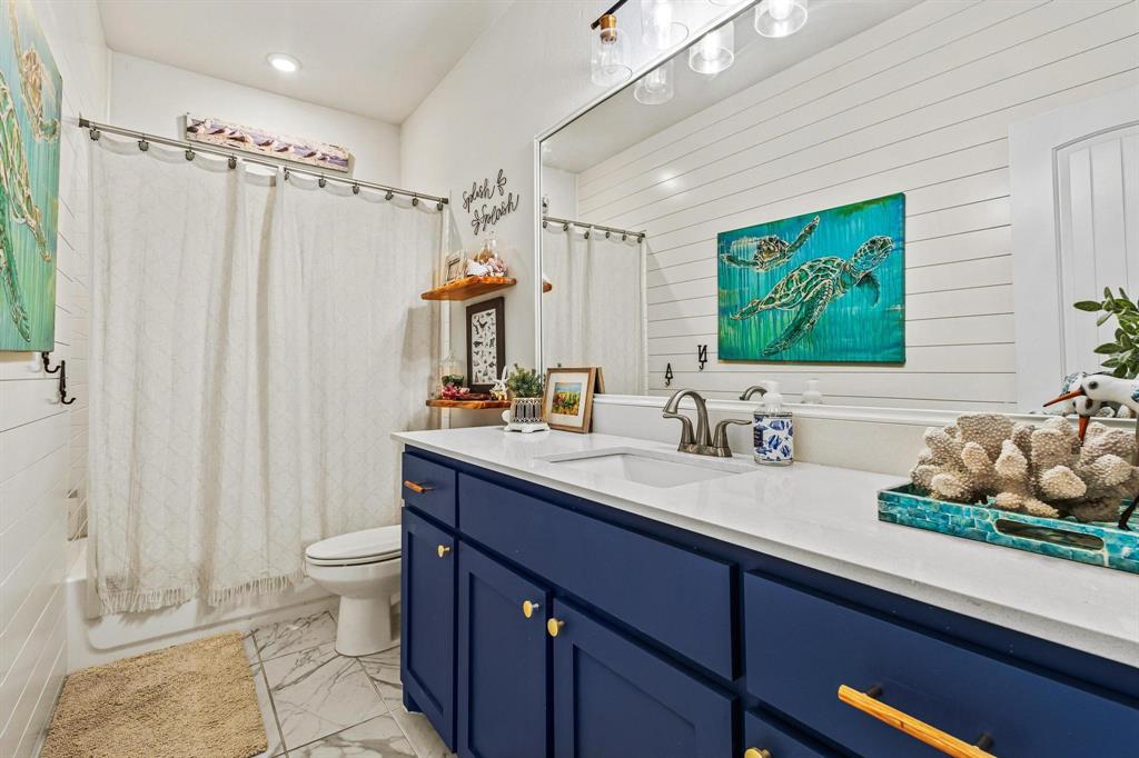 The primary suite offers a peaceful retreat with its own private bath and generous closet space. Two additional bedrooms are well-sized, providing flexibility for family, guests, or a home office. Both bathrooms are designed with modern touches and practicality in mind.