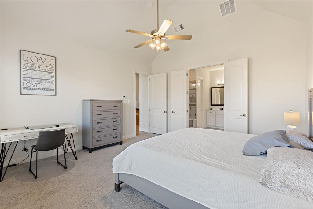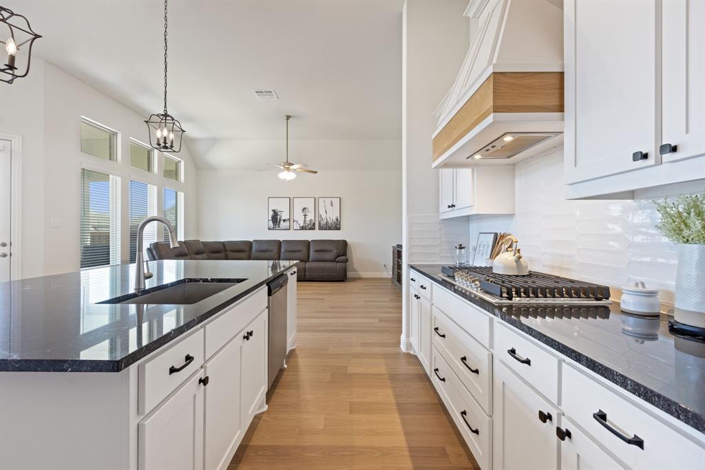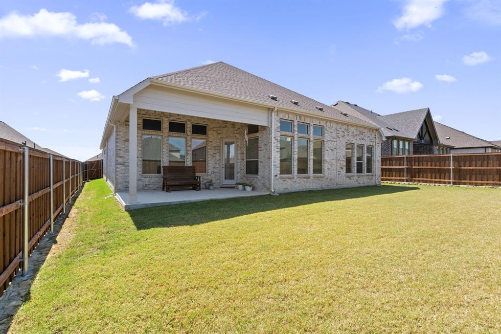 Ideally positioned within the iconic and highly sought-after lakeside INSPIRATION community, this stunning one-year-old home offers a prime setting directly across from the neighborhood green space. Boasting nearly 2,500 sq ft of thoughtfully curated design all on one level, this home features three spacious bedrooms plus a private office tucked behind french doors, and a dream chef's kitchen equipped with everything a culinary expert could desire, including a gas cooktop and large island overlooking the living and dining areas - perfect for entertaining and spending time with the family. Soaring ceilings and an abundance of windows flood the space with natural light, enhancing the bright, open feel and beautifully highlighting the oak-toned flooring throughout the main living areas. The luxurious primary suite is a true sanctuary to relax and unwind at the end of the day, featuring a spa-inspired bath with dual vanities, a soaking tub, frameless super shower, and a spacious walk-in closet. Enjoy your private, secluded backyard - spacious enough for a pool - while savoring a cup of coffee or an adult beverage under the covered patio. Outside your home, the amenities rival the best resorts. Enjoy everything at your fingertips, including multiple pools, a 350-foot lazy river open year-round, a luxurious clubhouse, a two-story fitness center, multiple playgrounds, dog parks, pickleball courts, stocked fishing ponds, miles of scenic trails with lake access, and a full calendar of HOA-hosted events. The property is serviced by exemplary Wylie ISD and offers the added convenience of an on-site elementary school.