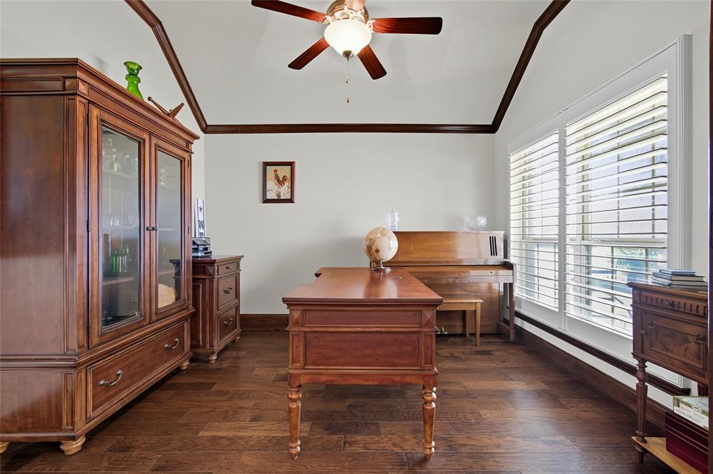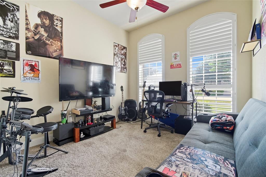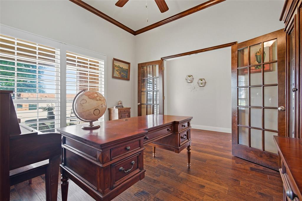 A dedicated office with French doors provides privacy for work or study, while the flexible secondary bedrooms are perfect for guests, kids, or hobbies. The spacious primary suite offers a serene retreat with a spa-style bathroom featuring dual vanities, soaking tub, and walk-in shower.