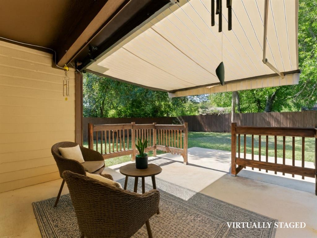 Step outside to a private backyard with a covered patio, retractable awning, and full fencing—ready for cookouts, playtime, or simply relaxing in the shade. The home also includes energy-saving solar panels that transfer to the new buyer at zero cost through a lifetime lease, a rare benefit that keeps utility bills low year-round.