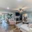 The backyard is a true retreat with a diving pool, turfed yard and putting green, freshly stained fence, gated driveway, and a fully equipped outdoor kitchen with stainless gas grill, Green Egg, and mounted TV. Inside and out, the home has been carefully maintained and thoughtfully upgraded, including Pella windows across the front and Pella double backdoor unit, new hardwood flooring in the dining and guest rooms, a completely updated primary bath and custom closet system, and new turf and putting green. The laundry room was remodeled in 2018, all pool equipment was replaced in 2021, and two new HVAC units were installed in 2025. With lush landscaping, stylish finishes, and every modern convenience, this home is move-in ready and perfect for both everyday living and entertaining.