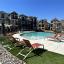 Other notable features include rich hand-nailed hardwood floors, two private balconies, a dramatic corner wall of windows, and plentiful guest parking. Within this gated neighborhood, residents enjoy resort-style amenities such as a sparkling pool with cabanas, landscaped green spaces, a fire pit for evening gatherings, and a dedicated dog park.