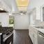 The kitchen includes white cabinets, new stainless steel appliances, a gas range with electric oven, and a walk-in pantry. The primary bedroom has dual closets and an ensuite bathroom. Two additional bedrooms, one with a walk in closet and both with ceiling fans.