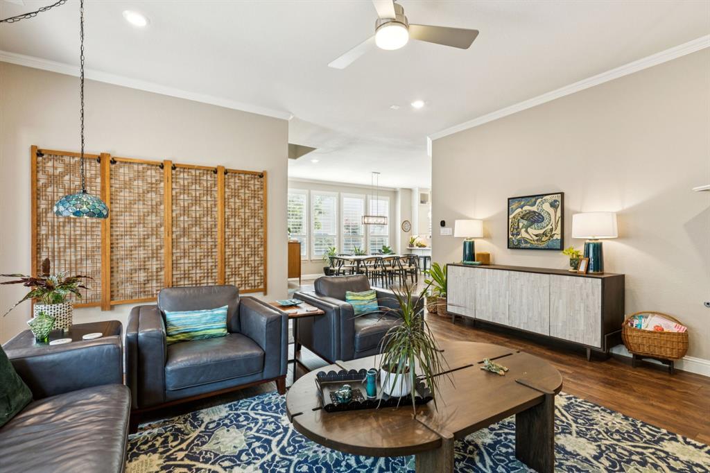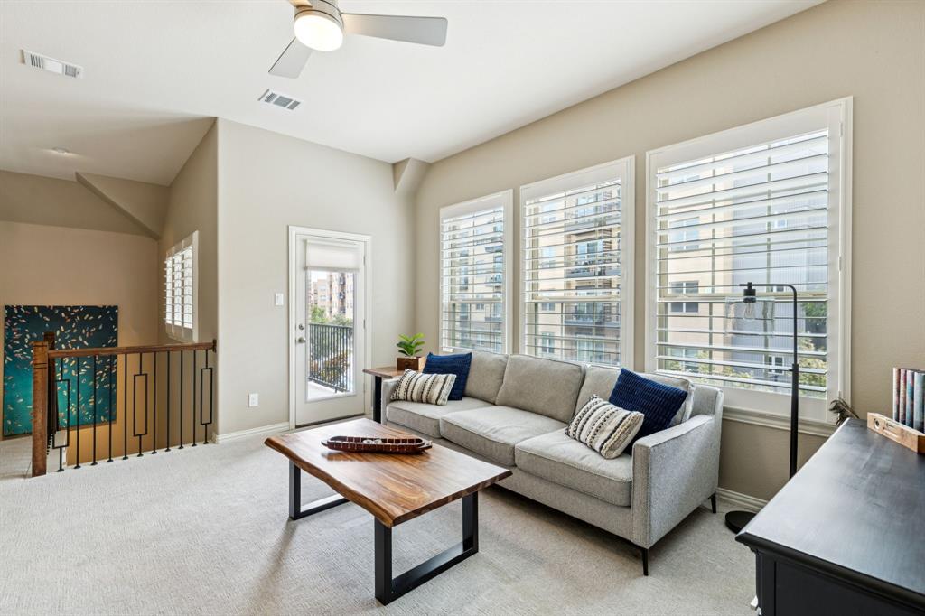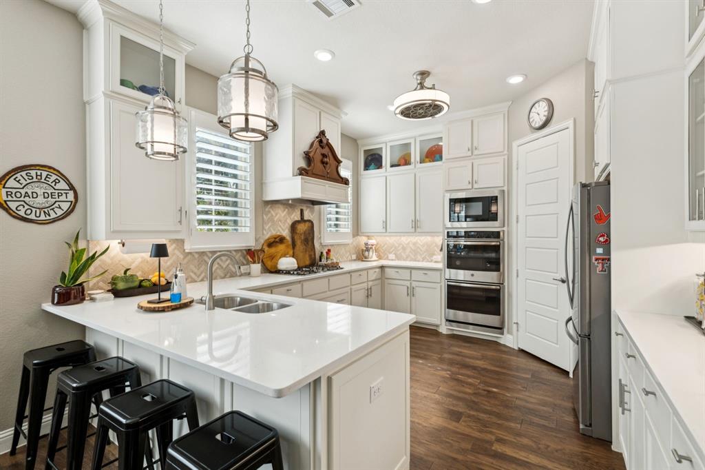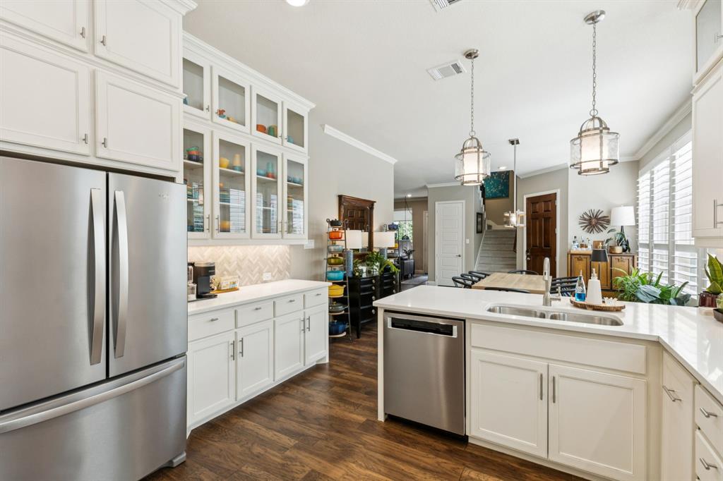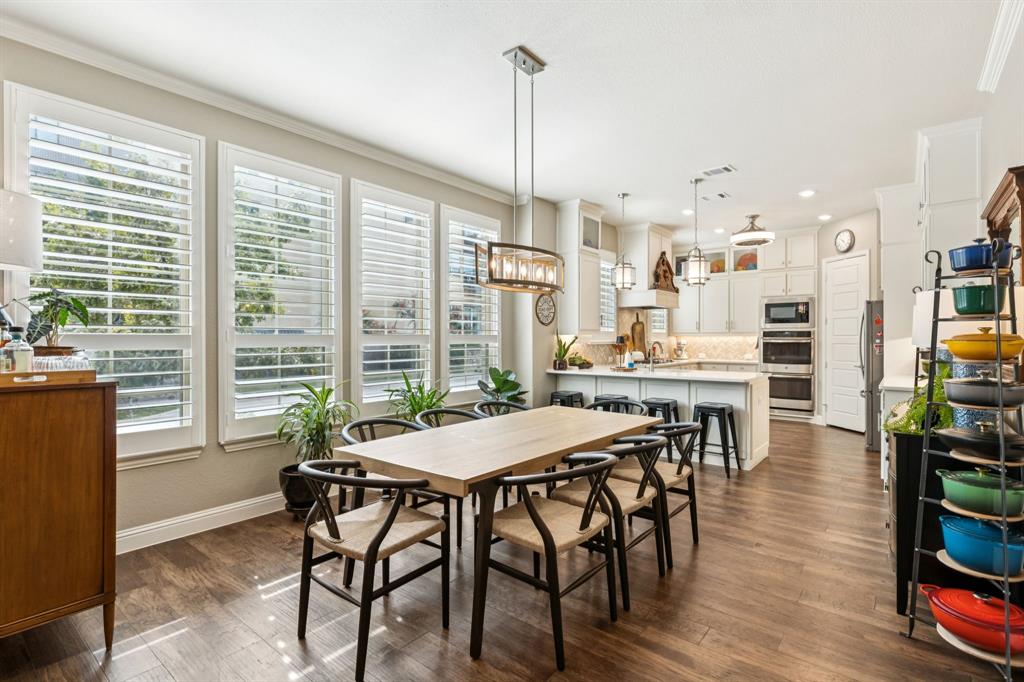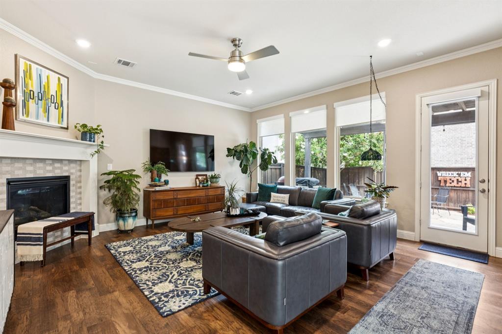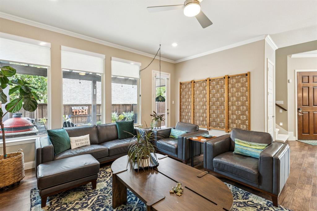 Don't miss this luxuriously updated zero-lot home that blends first-class design with low-maintenance living in a conveniently located neighborhood near I 75, George Bush Tollway, and loads of restaurants and shopping. Featured by 3 spacious bedrooms, 2.5 baths, and a versatile upstairs game room with a covered balcony this home has vibes of a million dollar home The open-concept layout showcases rich hardwood floors, custom plantation shutters, and a chef-inspired kitchen with quartz countertops, stainless steel appliances, double convection ovens, and designer cabinetry.