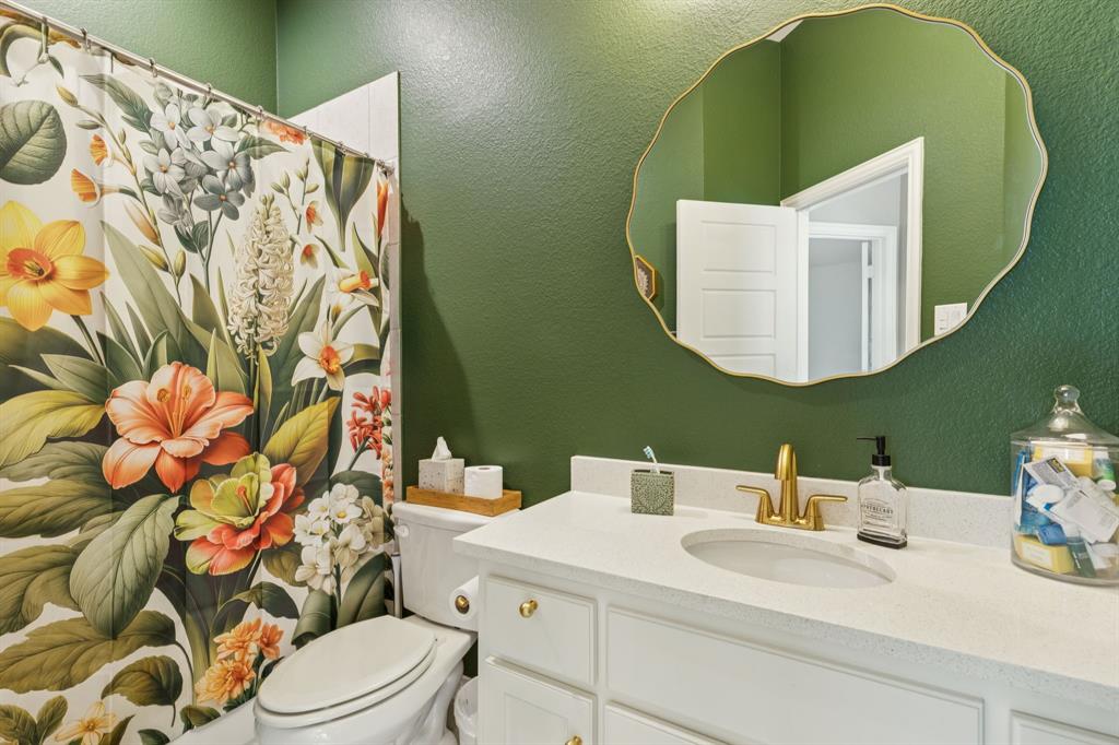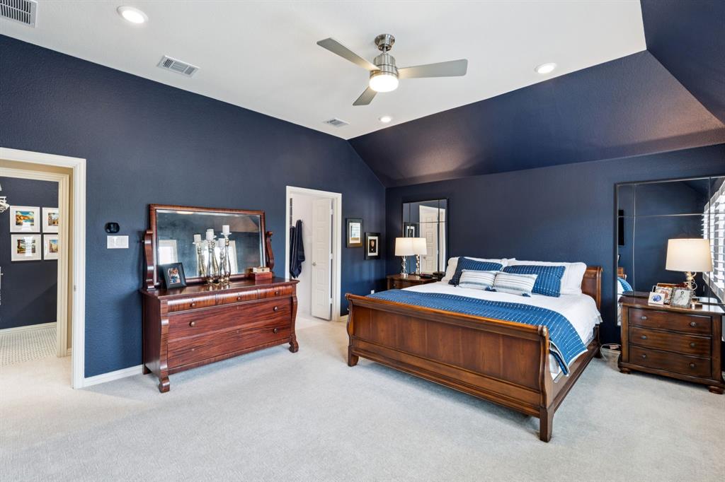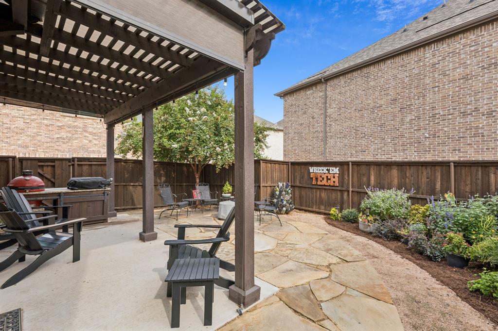 The primary suite is a true retreat, offering a sitting area, spa-like bath, and custom closet systems. Step outside to a private outdoor living center with a pergola, flagstone patio, and motorized sunshade—perfect for relaxing or entertaining. Additional highlights include: Epoxy finished garage with built in storage, loads of energy efficient features, and a professionally landscaped big corner lot.