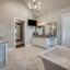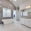 The first floor includes a spa-like primary suite with dual vanities, two walk-in closets, and a serene soaking tub. A secondary bedroom with a full bath downstairs is ideal for guests or multi-generational living. The media room on the main level makes movie nights effortless.