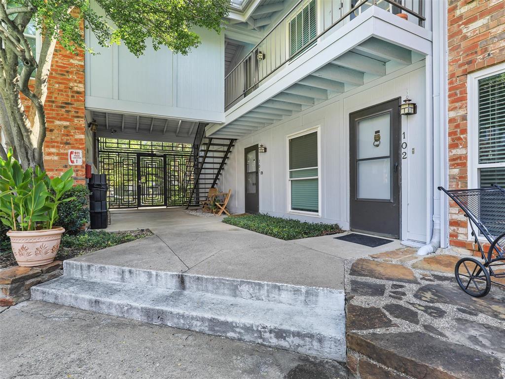 Location, Location, Location! This updated condo is perfect for low-maintenance living with modern comfort. Featuring 2 bedrooms, 2 full baths, and an in-unit washer & dryer combo, this home is designed for convenience. The kitchen features stainless steel appliances, including refrigerator while the spacious living and eating area create a warm, inviting flow. Enjoy lots of storage with oversized closets, plus two designated parking spots right outside your back door. Relax on your front porch overlooking the courtyard and pool, offering both privacy and community charm. The gated community includes covered mailboxes and breezeways, and with HOA dues covering water, sewer, and trash, living here is stress-free. All just a short walk to Cedar Springs Road and minutes from Dallas North Tollway and Hwy 75.