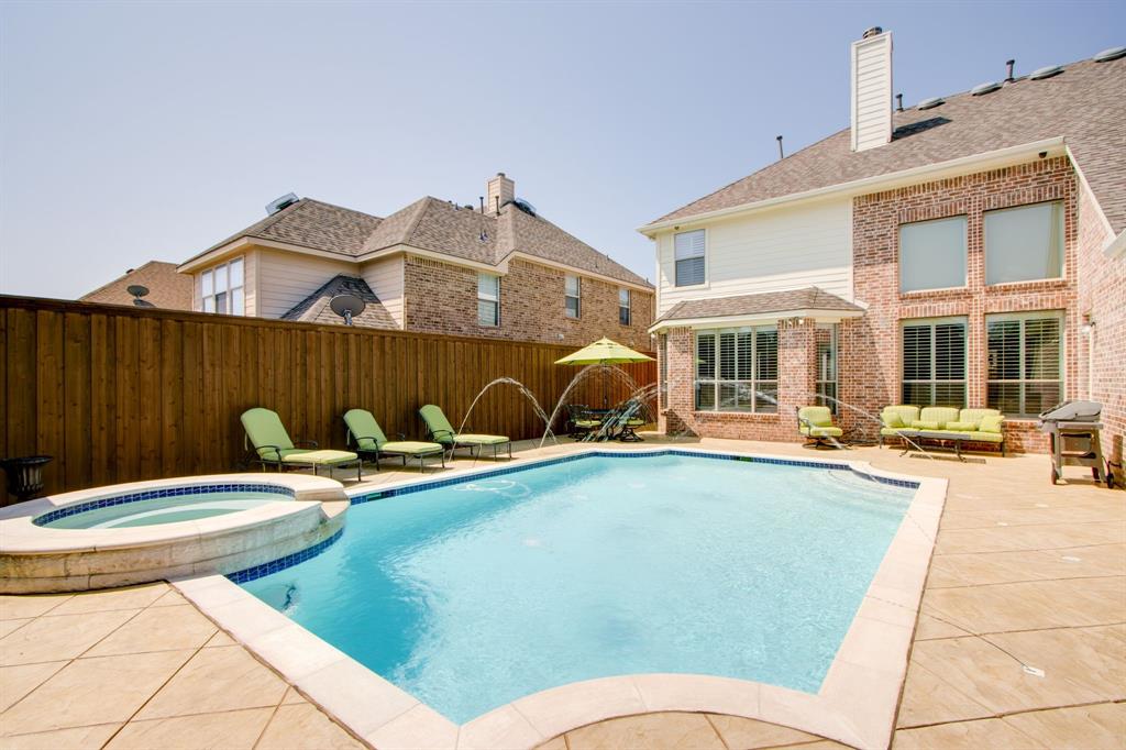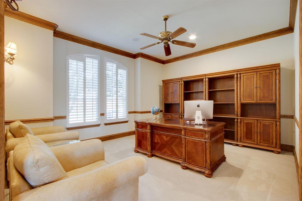 Spotless, like-new condition 4 bedroom, 3 bath & 1-half bath incredible home with main living areas, primary suite, and office on the first floor. Living room has a dramatic 20-ft. soaring ceiling plus 10-ft. ceilings with 8-ft. doors throughout. Living Room has surround sound & most rooms have built-in speakers. Gorgeous open concept kitchen has a large pantry plus lots of cabinets, dry bar, Large Lazy Susan, 2 large pull-out kitchen drawers for storing heavy pots & pans, AquaSana reverse osmosis water purifier, a Whirlpool Convection Oven, electric glass cook top and an over-sized island with beautiful 3 cm granite plus a 60-40 split sink. Below the glass cook top is a gas outlet if you prefer natural gas. Primary bedroom has breathtaking views of the pool, the bathroom has a deep Jacuzzi tub and a huge closet with a 'top Winter row' totaling 12 large rods. The half bath also serves the pool. Second floor has 3 bedrooms (2 w wood floors & 1 w custom bookshelves), 2 full baths and a large 2nd living area plus a climate-controlled Flex Room for storage, a home gym, craft room or media room. Additionally, behind the Flex Room is a huge walk-in floored storage attic with lighting above the garage. UPGRADES: Plantation shutters and crown moldings; over 35 recessed lights; high-quality fans & fixtures; 2 Trane HVACs 4.5-ton & 4-ton (2021) plus Trane Thermostats w iPhone APP; 2 Gas Water Heaters (2023 & 2024); Class-4 Shingle Roof (2024); Microwave (2023).