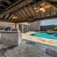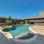 Welcome to a beautifully maintained home that blends comfort and elegance throughout. From the moment you enter, you are greeted by rich hardwood floors and crown molding that set the tone for the open, inviting floor plan. The spacious living room with its striking stone-veneer fireplace flows seamlessly into the kitchen, making it ideal for both everyday living and entertaining. The chef’s kitchen is a true centerpiece with granite countertops, a large island, custom tile backsplash, stainless steel appliances, double ovens, gas cooktop, and two pantries. Just off the kitchen, the utility room offers added convenience with space for a freezer. The primary suite is a private retreat with serene views of the backyard and pool. The en-suite bath features separate vanities with dual sinks, a garden tub, walk-in shower, and an oversized closet with built-in shelving. On the main level, you’ll also find a formal dining room and a unique step-down flex space that can serve as a wine grotto, playroom, or bonus room. Midway up the staircase sits a private office with French doors, perfect for working from home. Upstairs, a large game room with a wet bar leads to a dedicated media room. Generously sized secondary bedrooms include a Jack-and-Jill bath as well as an additional full bath. The backyard is an entertainer’s dream. A sparkling pool and spa are surrounded by a flagstone patio and lush landscaping, while the covered outdoor cabana kitchen is fully equipped with a built-in Green Egg, gas cooktop, griddle, and grill. It truly feels like an outdoor oasis. Fresh paint, thoughtful design, and exceptional care throughout make this home move-in ready.