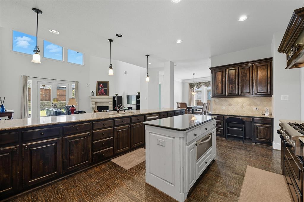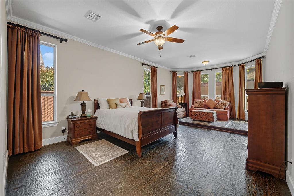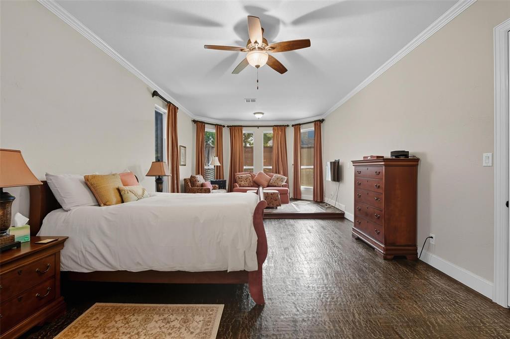 Step into luxury with stunning 5 bedroom, 4.5 bath entertainer's dream in Lantana premier golf community. From the moment you arrive, the dramatic grand entrance foyer with soaring ceilings and sweeping curved staircase makes and unforgettable first impression. The beautiful hand scraped floors throughout conveys elegance and craftsmanship. The first floor offers both beauty and function with a private guest suite with full bath, a dedicated study with French doors, a chef's kitchen with oversized island and six burner gas cooktop double ovens, and butler's pantry. the formal dining and private wine room creates a seamless entertainment spaces. Upstairs, a spacious game room and oversized media room is perfect for family fun and movie nights. Outdoor living shines with a coverd patio complete with fireplace built in grill and refridgerator perfect for yoer round gathering and plenty of space to add your dream pool. Nestled on a cul-de-sac near trails, parks and resort style amenities, this home balances luxury and lifestyle.