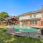 Step into comfort and style with this stunning 3-bedroom, 2.5-bath home featuring an open-concept layout and soaring vaulted ceilings. The spacious living area is filled with natural light from abundant windows and centers around a cozy gas fireplace—perfect for relaxing or entertaining guests. Enjoy the elegance of newly installed carpet paired with rich wood floors throughout the main living spaces. The updated bathrooms offer modern finishes, including a luxurious primary suite featuring dual his-and-her sinks, a decorative tile shower, and a standing tub for the ultimate spa-like retreat. Each bedroom is generously sized, providing ample room for family, guests, or a home office setup. Outside, your private oasis awaits with a large pergola-covered patio, ideal for outdoor dining and entertaining. Cool off in the beautiful inground pool, all set beneath mature shade trees that provide comfort and privacy. Whether you’re hosting gatherings or simply enjoying quiet moments at home, this property offers the perfect blend of functionality and luxury