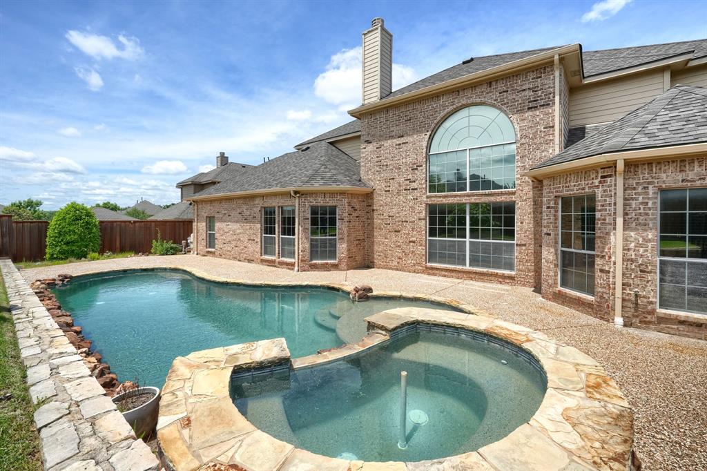 Upon entering you will be wowed by the double height ceiling leading into the living room of the house. As you walk by the formal living and dining spaces, you are greeted to the large family living room with a floor to ceiling stone fireplace. The chef's kitchen has stainless steel appliances, granite counters, gas stove, and plenty of storage with a breakfast nook with a view of the pool. A full guest bathroom is located on the bottom floor. Upstairs you will find an open game room, media room, 4 spacious bedrooms, and 2 full baths with access to all rooms. The attic door leads you out to a massive amount of decked space for extra storage. The backyard is the perfect place to relax with guests with a covered canopy by the pool, plenty of yard space, and built-in gardening beds. As you make your way past the pool waterfall and attached hot tub you will find lots of space to gather for a perfect pool party. The open backyard also contains a wooden shed for all your necessities. The garage has epoxy flooring and is roomy with plenty of storage space and the third car garage comes with a separate entrance for additional access to the space. Come schedule a tour to see this gorgeous property. This will not last long!!