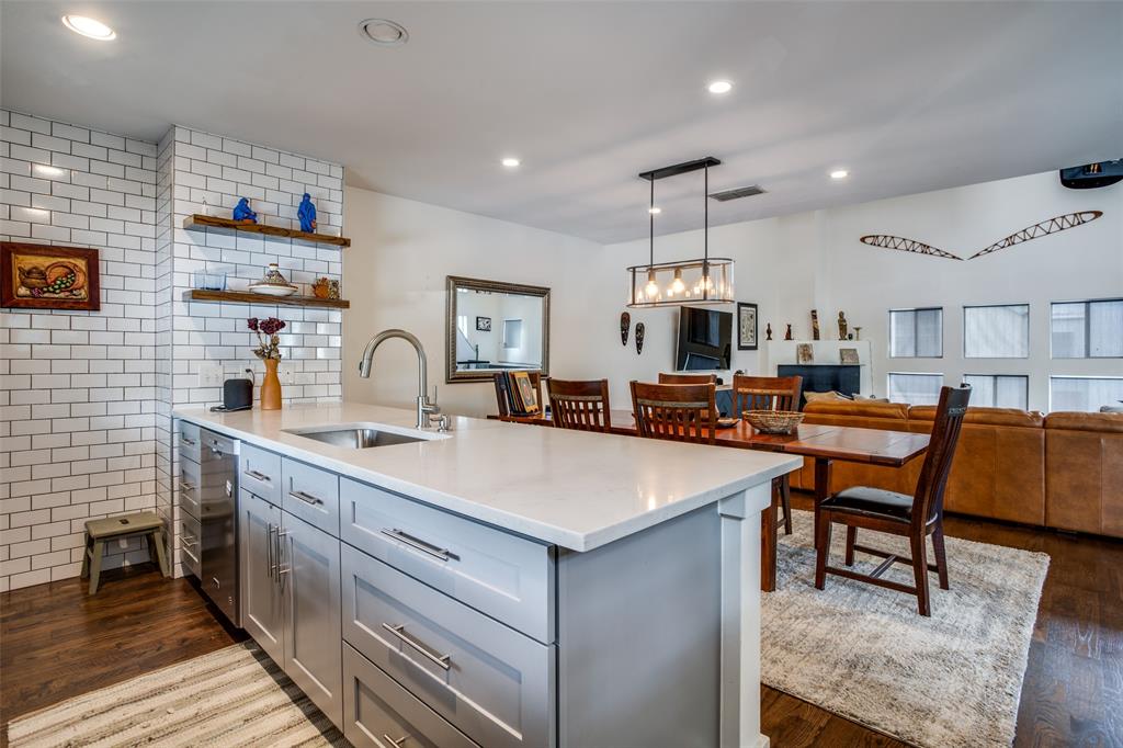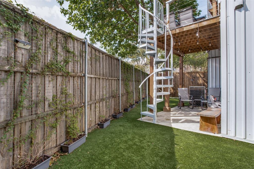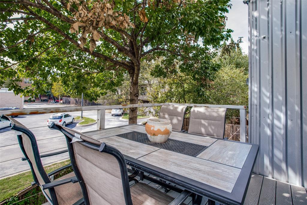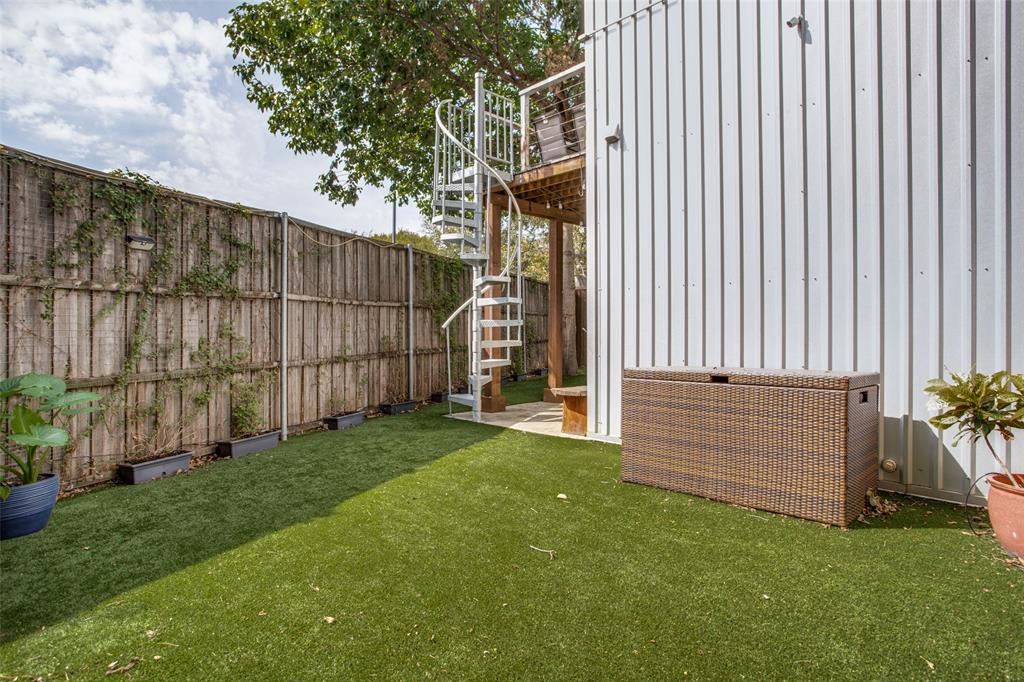 Stylish Corner Unit in Prime Dallas Location! Experience urban living at its finest in this sleek, light-filled townhome located in a gated complex just minutes from the heart of Dallas. This 3-story corner unit offers abundant space, storage, and modern updates throughout. The first floor features a private bedroom with a full bath, direct access to a covered patio, and a low-maintenance fenced backyard with premium AstroTurf—perfect for pets or relaxing outdoors. An attached two-car garage adds convenience. Upstairs, the open-concept second floor is ideal for entertaining, boasting a spacious living and dining area, updated kitchen with stainless steel appliances, subway tile backsplash, quartz countertops, and a generous island. A built-in study nook and a large balcony with breathtaking downtown views complete this level. The third floor offers a versatile second living area and a private primary suite with hardwood floors, a walk-in closet, and a luxurious en-suite bath featuring dual vanities and a glass-enclosed shower. With its unbeatable location, gated privacy, and modern style, this is a fantastic opportunity to own a move-in ready home in the vibrant urban core of Dallas.