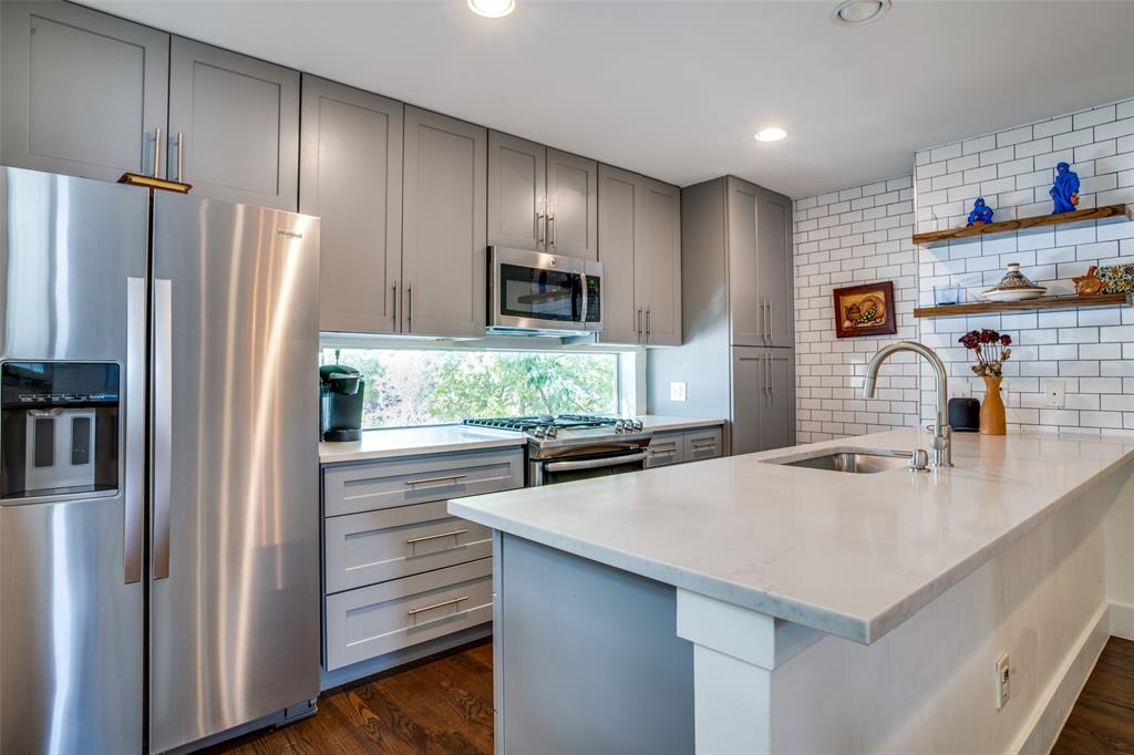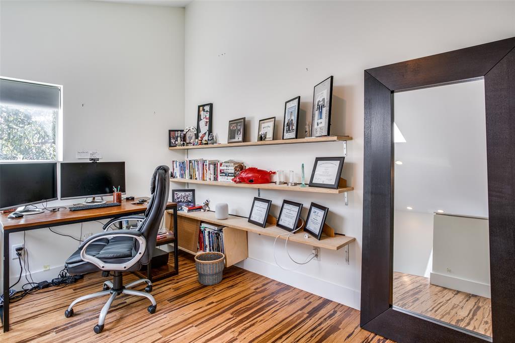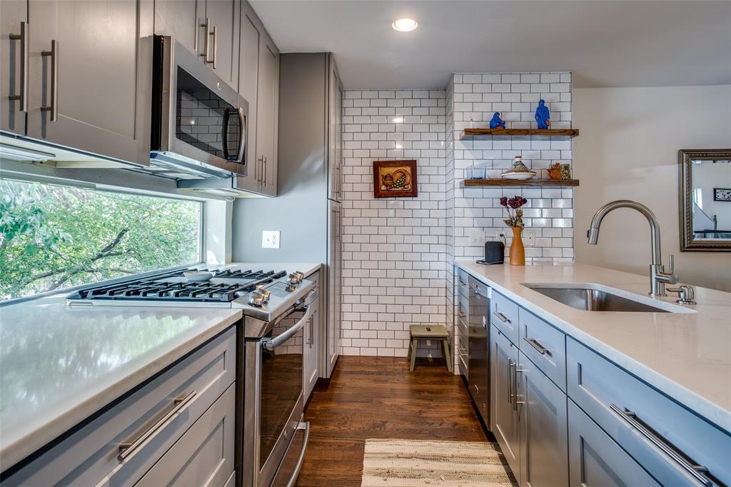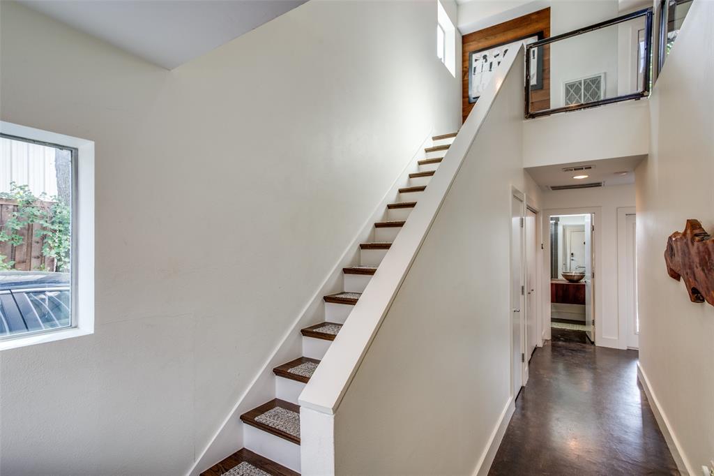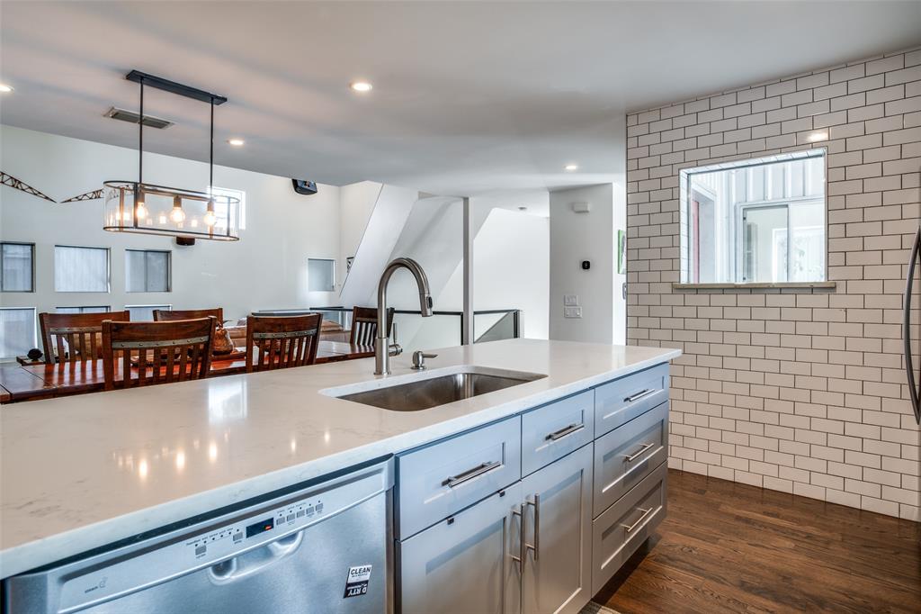 Stylish Corner Unit in Prime Dallas Location! Experience urban living at its finest in this sleek, light-filled townhome located in a gated complex just minutes from the heart of Dallas. This 3-story corner unit offers abundant space, storage, and modern updates throughout. The first floor features a private bedroom with a full bath, direct access to a covered patio, and a low-maintenance fenced backyard with premium AstroTurf—perfect for pets or relaxing outdoors. An attached two-car garage adds convenience. Upstairs, the open-concept second floor is ideal for entertaining, boasting a spacious living and dining area, updated kitchen with stainless steel appliances, subway tile backsplash, quartz countertops, and a generous island. A built-in study nook and a large balcony with breathtaking downtown views complete this level. The third floor offers a versatile second living area and a private primary suite with hardwood floors, a walk-in closet, and a luxurious en-suite bath featuring dual vanities and a glass-enclosed shower. With its unbeatable location, gated privacy, and modern style, this is a fantastic opportunity to own a move-in ready home in the vibrant urban core of Dallas.