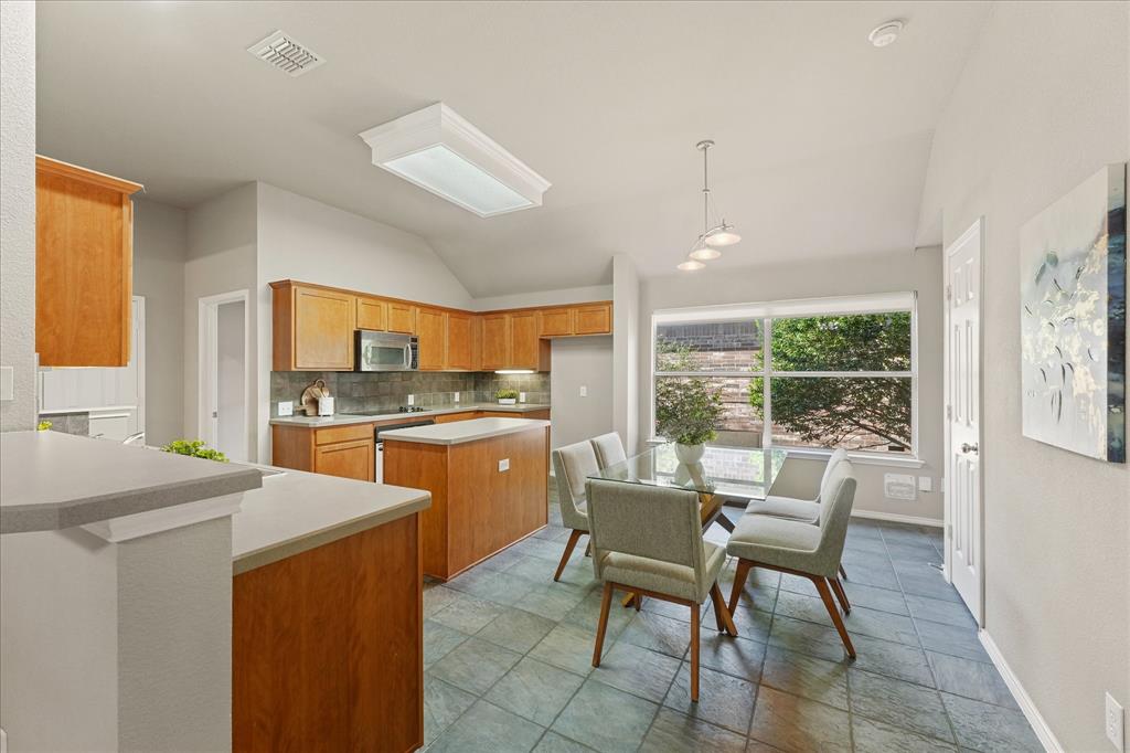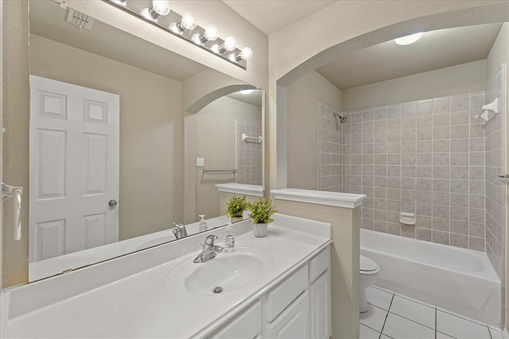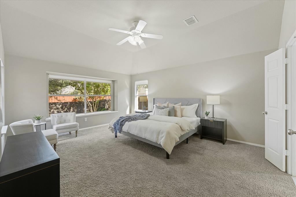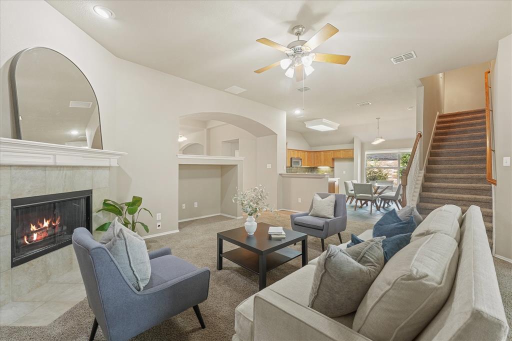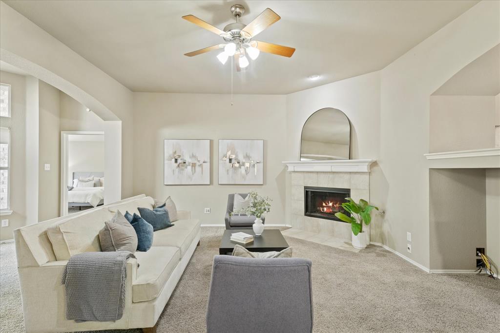Welcome to this well maintained home nestled in a quiet family-friendly neighborhood with top rated schools. This spacious abode offers a perfect blend of comfort & convenience. This thoughtfully designed 1.5-story home features all bedrooms on the first floor with a massive media room upstairs. This home has split bedrooms, roller blinds, and a private, easy maintenance yard. The kitchen has an island, pullout shelving, maple cabinets, stainless steel appliances, and under cabinet lighting. The living room has surround sound and a cozy fireplace. The primary suite offers a private retreat with a generous walk-in closet, dual vanities, and a separate shower and soaking tub. HVAC (2025), Roof (2024), Fence (2024), Kitchen window (2024), Fresh paint (2024), HVAC ducts & Chimney cleaned (2023), Water heater (2020). Centrally located between 2 neighborhood parks and only a short distance to Celebration park, community pool, ponds, hiking trails, shopping, dining, and entertainment. Move in ready. Schedule a showing today!