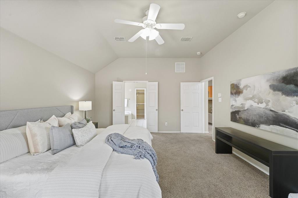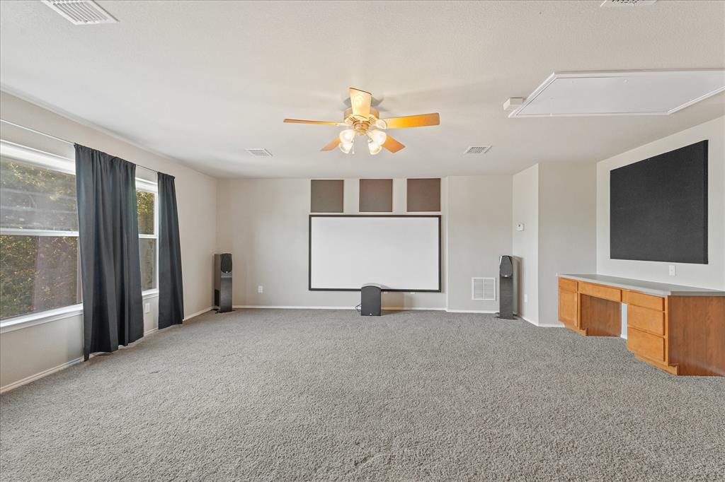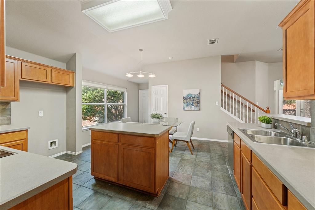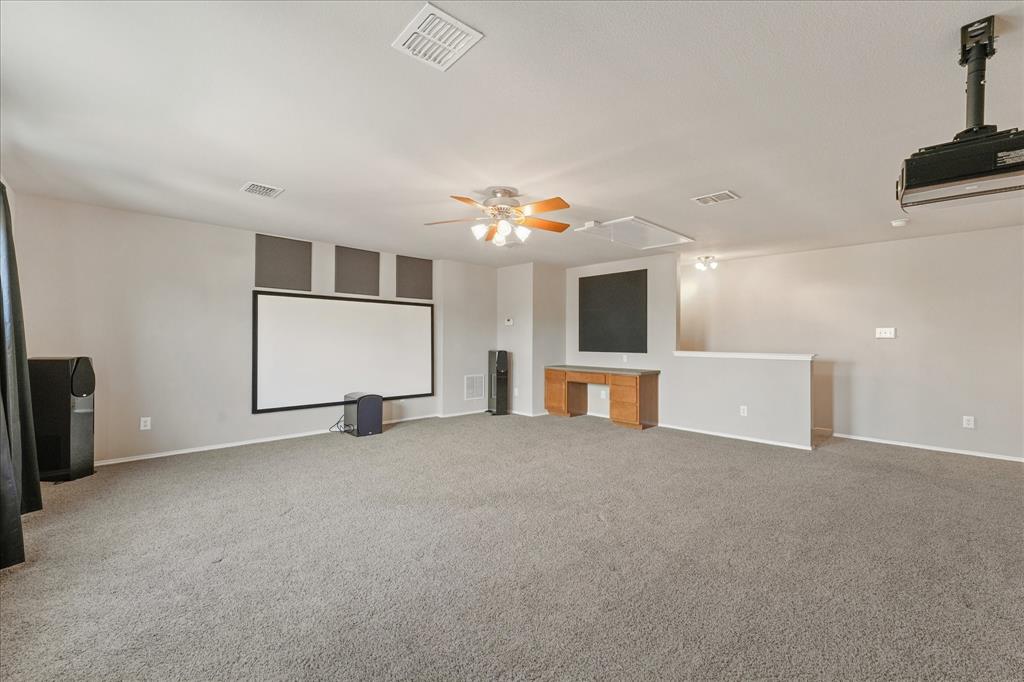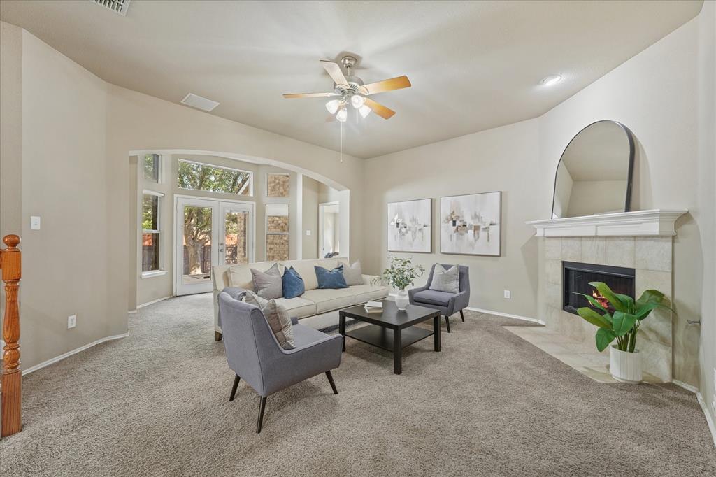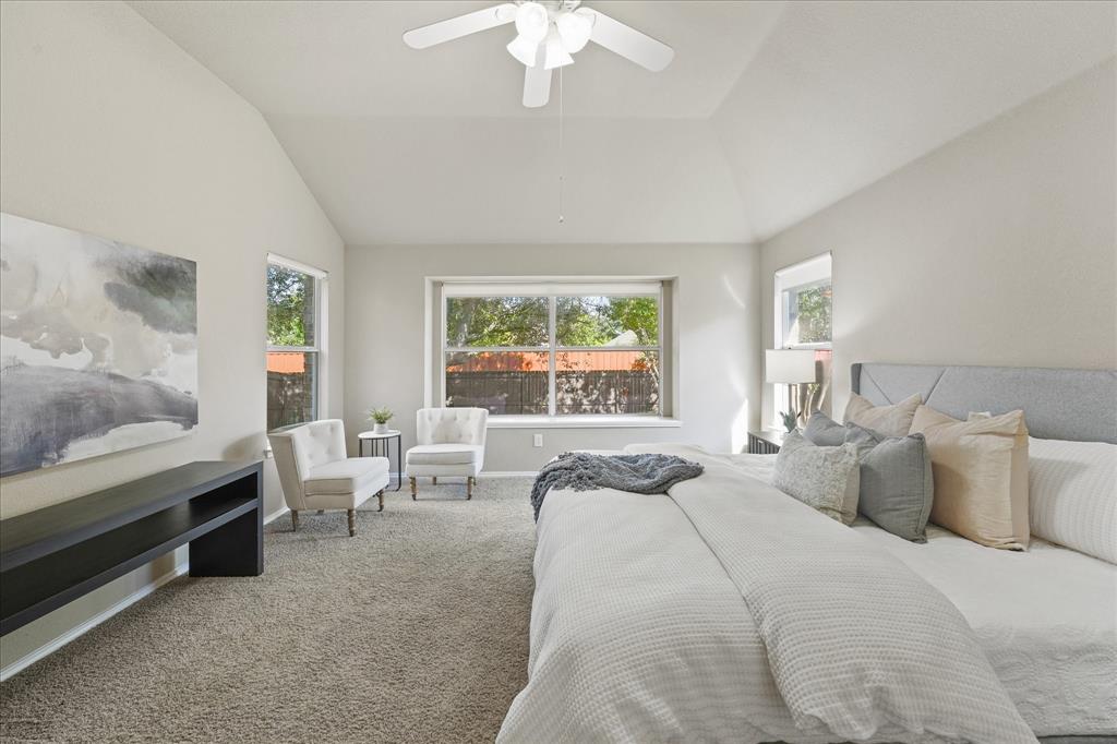 Welcome to this well maintained home nestled in a quiet family-friendly neighborhood with top rated schools. This spacious abode offers a perfect blend of comfort & convenience. This thoughtfully designed 1.5-story home features all bedrooms on the first floor with a massive media room upstairs. This home has split bedrooms, roller blinds, and a private, easy maintenance yard. The kitchen has an island, pullout shelving, maple cabinets, stainless steel appliances, and under cabinet lighting. The living room has surround sound and a cozy fireplace. The primary suite offers a private retreat with a generous walk-in closet, dual vanities, and a separate shower and soaking tub. HVAC (2025), Roof (2024), Fence (2024), Kitchen window (2024), Fresh paint (2024), HVAC ducts & Chimney cleaned (2023), Water heater (2020). Centrally located between 2 neighborhood parks and only a short distance to Celebration park, community pool, ponds, hiking trails, shopping, dining, and entertainment. Move in ready. Schedule a showing today!