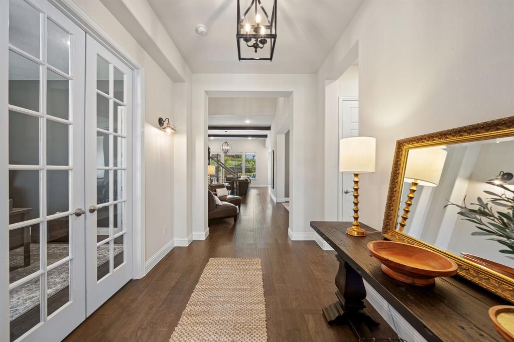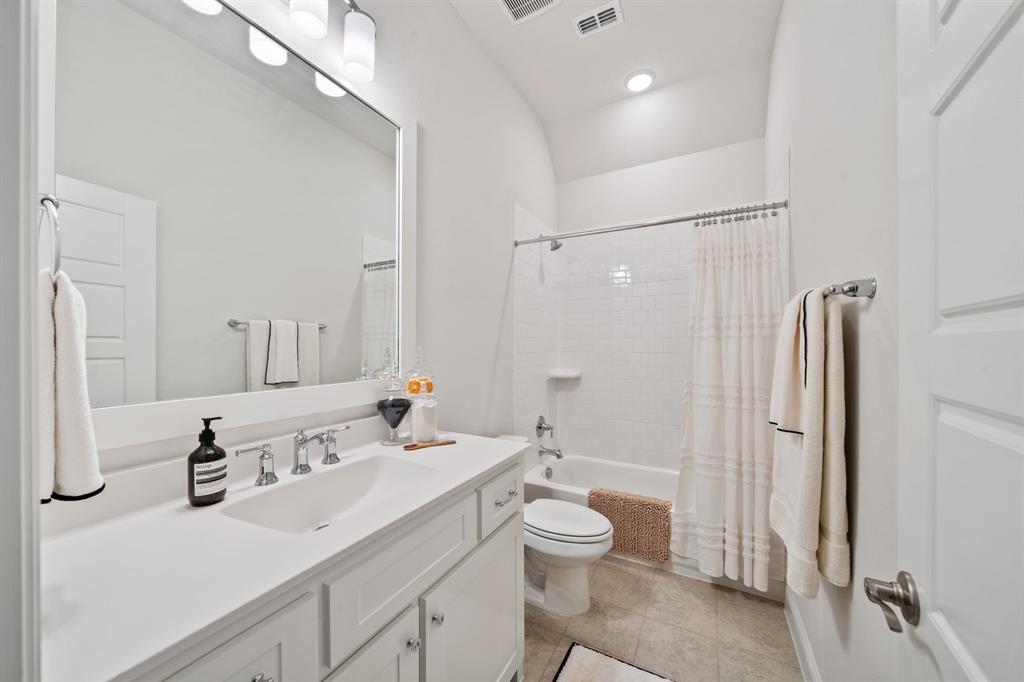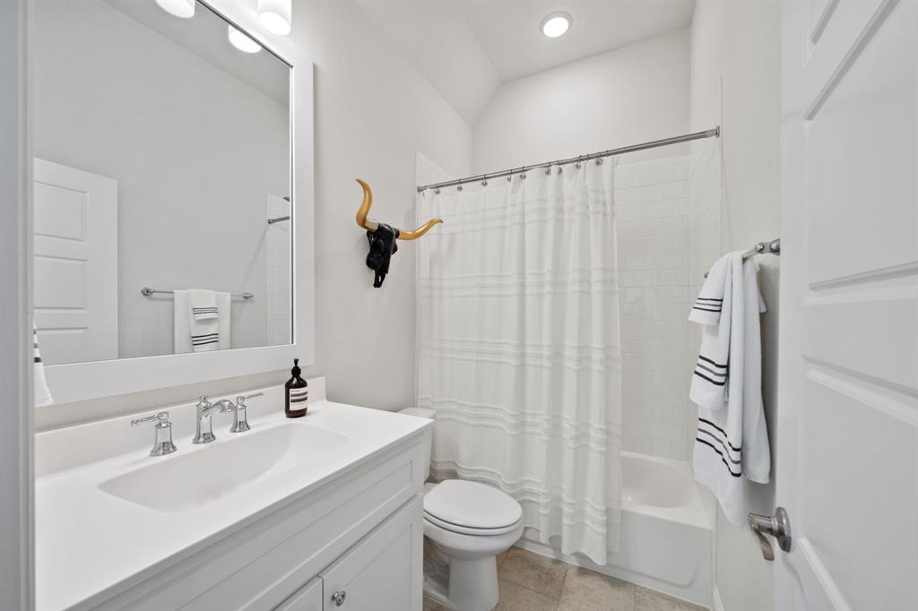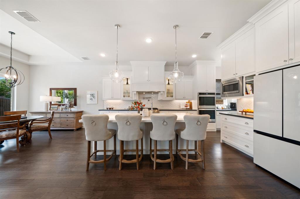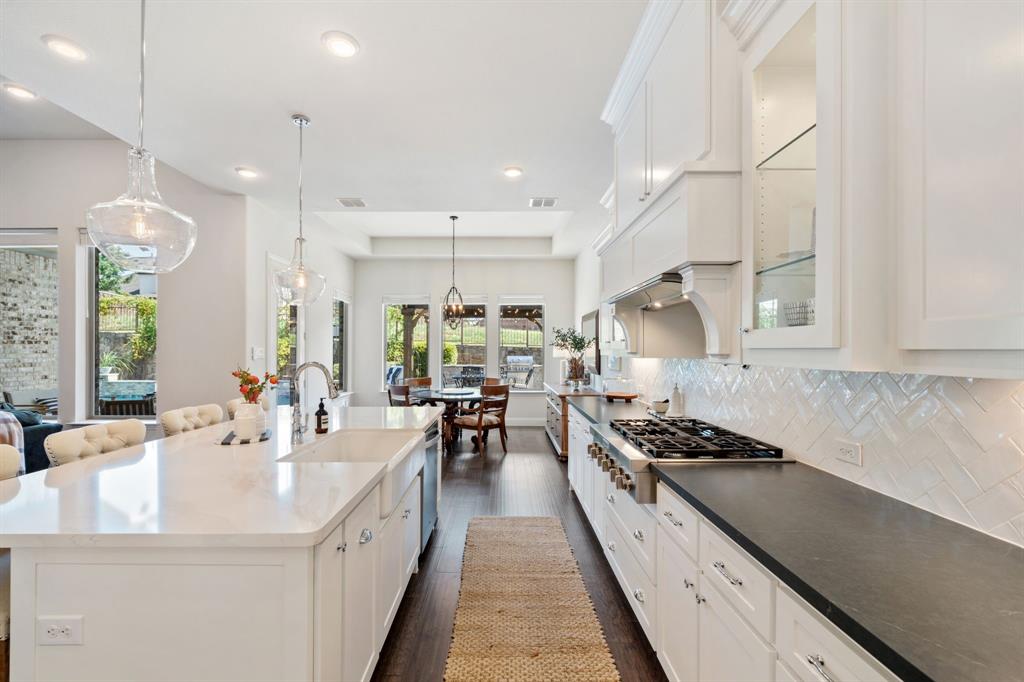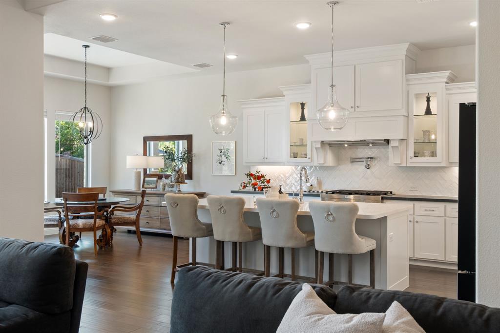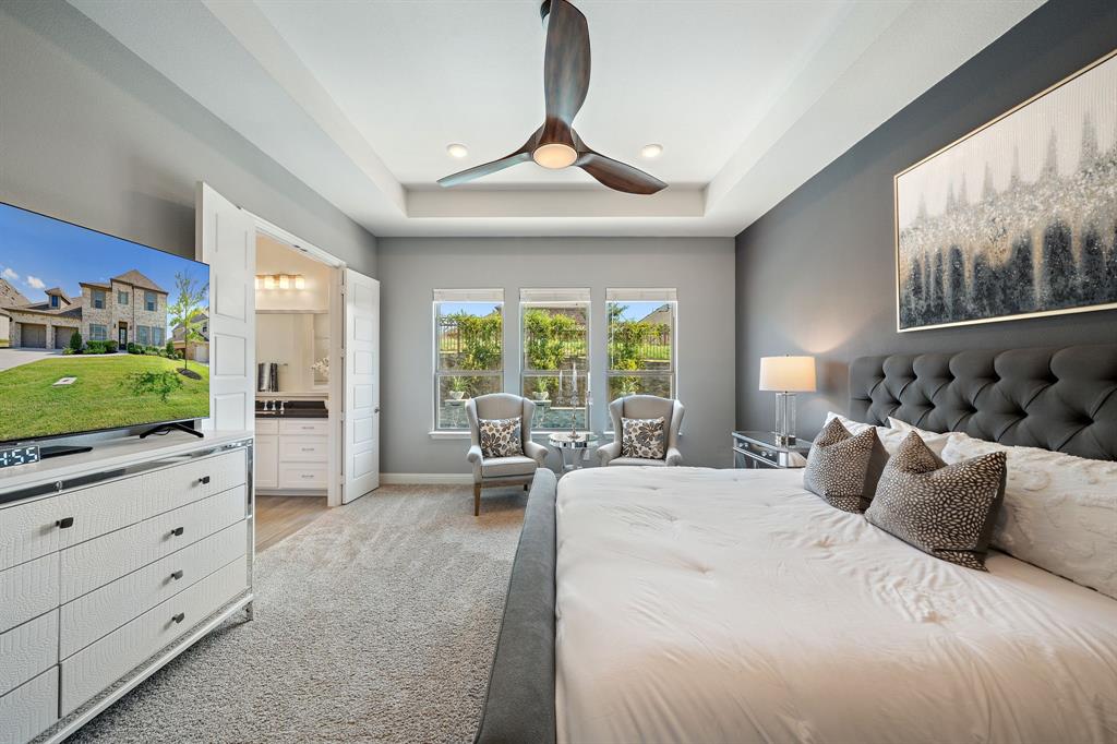 Gorgeous and immaculately maintained! Situated on a culdesac street with direct access to one of many paved trails of the master planned community Canyon Falls. This home exudes warmth and luxury from the moment you walk in. Warm wood flooring and neutral paint tones greet you as you enter. The main floor is perfectly laid out offering a dedicated office that could be utilized as a fifth bedroom, generous sized guest suite with full bath, half bath, massive utility room and a grand living room with wood beams, upgraded lighting and gas fireplace. Your dream kitchen awaits with tons of cabinetry, plenty of counter space, seated island, 6 burner gas stove, pot filler, double oven, pull out spice rack, polished nickel finishes and tons of natural light. The primary suite is tucked away with a spa like bath featuring separate vanities, soaking tub and frameless glass shower. You'll have sparkling pool views from almost every room on the main floor! The second story offers an additional living space, two bedrooms and two full bathrooms, one being ensuite and a bonus room, currently being utilized as a gym, but could be the perfect media room as it is wired for surround sound. The back yard is perfect for entertaining with covered patio overlooking the pool with waterfall features and LED lighting with phone app control. The pergola is wired for surround sound and provides the perfect spot for outdoor cooking. There is extensive counter space for meal prep and serving, built in beverage fridge and direct plumbed Bull gas grill. Your new home comes with smart features for your sprinkler system, thermostats, pool and security. Canyon Falls is where nature meets community and offers tons of fabulous amenities for residents including pool, fitness center, pooch park, fishing, hiking, biking and tons of activities and events. HOA dues cover front yard maintenance, cable and internet. Zones to highly rated Argyle ISD and within walking distance to schools.