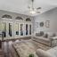 Nestled in a beautifully landscaped, gated community, this elegant one-story east facing home offers charm, comfort, and exceptional amenities. Step through the grand rotunda entry and be welcomed by soaring ceilings and natural light. Just off the foyer, a versatile office or 4th bedroom features French doors and a bay window, while a second living area invites conversation and connection. The heart of the home is a light-filled kitchen with white cabinetry, double ovens, breakfast bar, and center island—perfectly open to the spacious living room with built-ins and a cozy brick fireplace. Multiple French doors lead to a covered, screened-in patio ideal for entertaining year-round. The serene primary suite boasts a sitting area, a spa-inspired ensuite with a sleek, modern shower, and a jaw-dropping custom closet designed for ultimate organization. Home also features a massive oversized garage. Beyond the home, enjoy resort-style living with access to a clubhouse featuring a gym, ballroom, and billiards room, a unique 9-hole par-3 golf course, two pools (including one with a lazy river), a tennis academy, playground, and stocked fishing lakes. Scenic walking trails and a central park add to the tranquil, community-focused lifestyle—all secured by a staffed guardhouse.