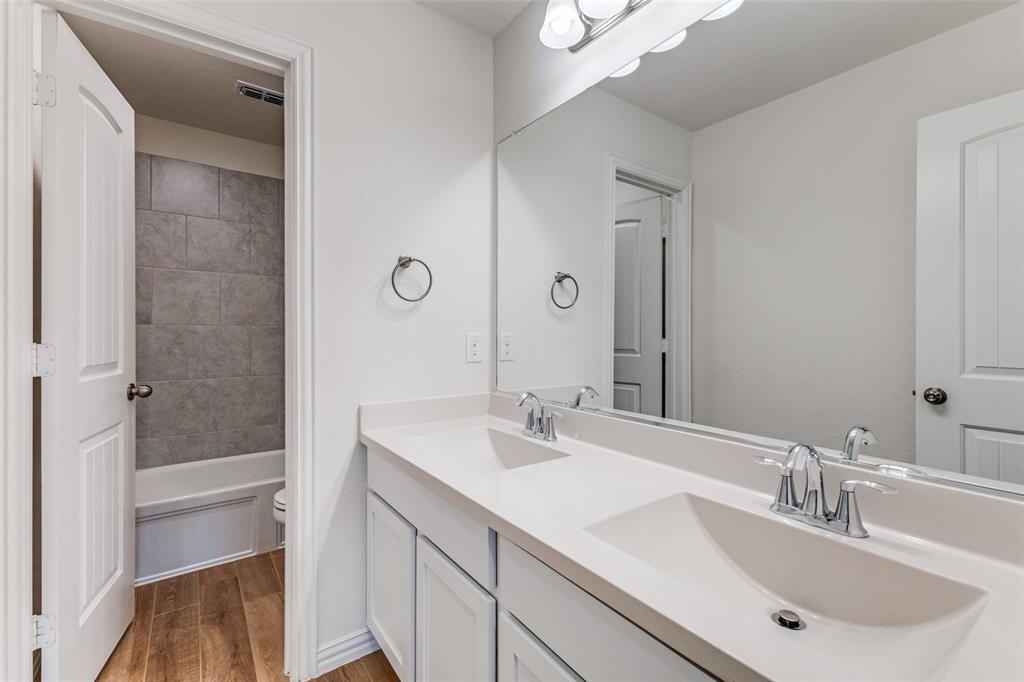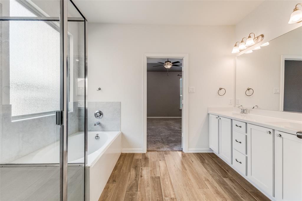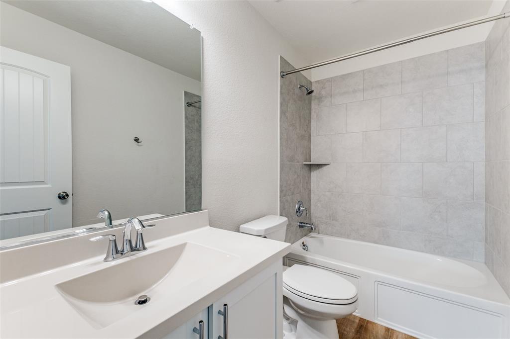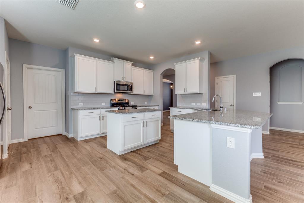 This exceptional 5 bedroom, 4 bath home has been meticulously maintained and is the perfect floor plan with TWO BEDROOMS DOWN and all the spaces a family needs. Amazing walk up appeal with beautiful landscaping. As you enter, you are welcomed with a fantastic open concept layout and sunlit soaring 2 story foyer! The dining room offers the perfect setting to entertain family and friends. Throughout the home you'll find beautiful wood-look ceramic flooring, arched doorways and crisp white cabinetry in the kitchen designed for culinary enthusiasts! A central island, breakfast bar, and pantry ensure plenty of space for meal prep and casual dining in the huge eat in area. A spacious primary bedroom and its ensuite bath are conveniently located on the 1st floor as well as a versatile secondary bedroom that provides flexibility, serving as an office, playroom, or guest suite as your needs change. Upstairs, you will find all the spaces ideal for relaxation and entertainment. 3 additional bedrooms and 2 full bathrooms complete the 2nd level offering comfort and convenience for all. Step outside to the covered patio, perfectly suited for barbecues and gatherings, while the private back yard provides a welcoming, secure space for children and pets to play. This home truly offers ample space for your family to grow and thrive in an amazing neighborhood and a location just minutes from anything you desire!