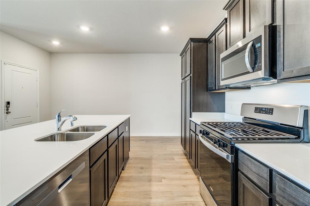 Great Opportunity!!! Seller is ready to sell!!! A modern and sleek townhome in the heart of Mesquite right off I-635 located in Iron Horse Village subdivision, and within minutes from Downtown Dallas, awaits you and is move-in ready. Enjoy the comforts of an open-concept layout. Lovely kitchen with granite countertops, stainless steel appliances plus refrigerator included. Luxurious vinyl plank flooring throughout the first floor second floor with carpet. A versatile loft for your convenience, bedrooms, two baths, washing room, which included washer and dryer, are upstairs. Bedrooms with WIC. Primary bedroom with ensuite which includes relaxing soaking tub, separate shower, vanity with dual sinks, a large walk-in closet, and a linen closet. Plus enjoy the attached two-car rear entry garage. Easy access to community mailbox. Enjoy the convenience of nearby major highways, along with restaurants, entertainment options, schools, and shopping centers. Seller considering all offers and is flexible.