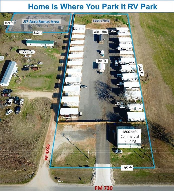 In addition to the RV sites, the property includes a leased commercial building and three 1,000 sq. ft. storage buildings (two occupied, one vacant), offering multiple streams of income. There are also three extra RV sites tucked away behind the storage units, providing a quiet, private setting—two of these are currently vacant, allowing for immediate upside.