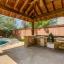 Step outside to your private backyard oasis with a sparkling pool and tranquil water feature. The fully equipped outdoor kitchen—complete with a Big Green Egg, included as a gift—makes entertaining a delight.