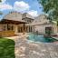 Inside, contemporary French country style shines through every detail. You’re greeted by soaring ceilings, an elegant dining room, and a thoughtfully designed office. The open-concept family room boasts dramatic vaulted ceilings, a floor-to-ceiling brick fireplace, and stunning outdoor views—creating an unforgettable first impression.